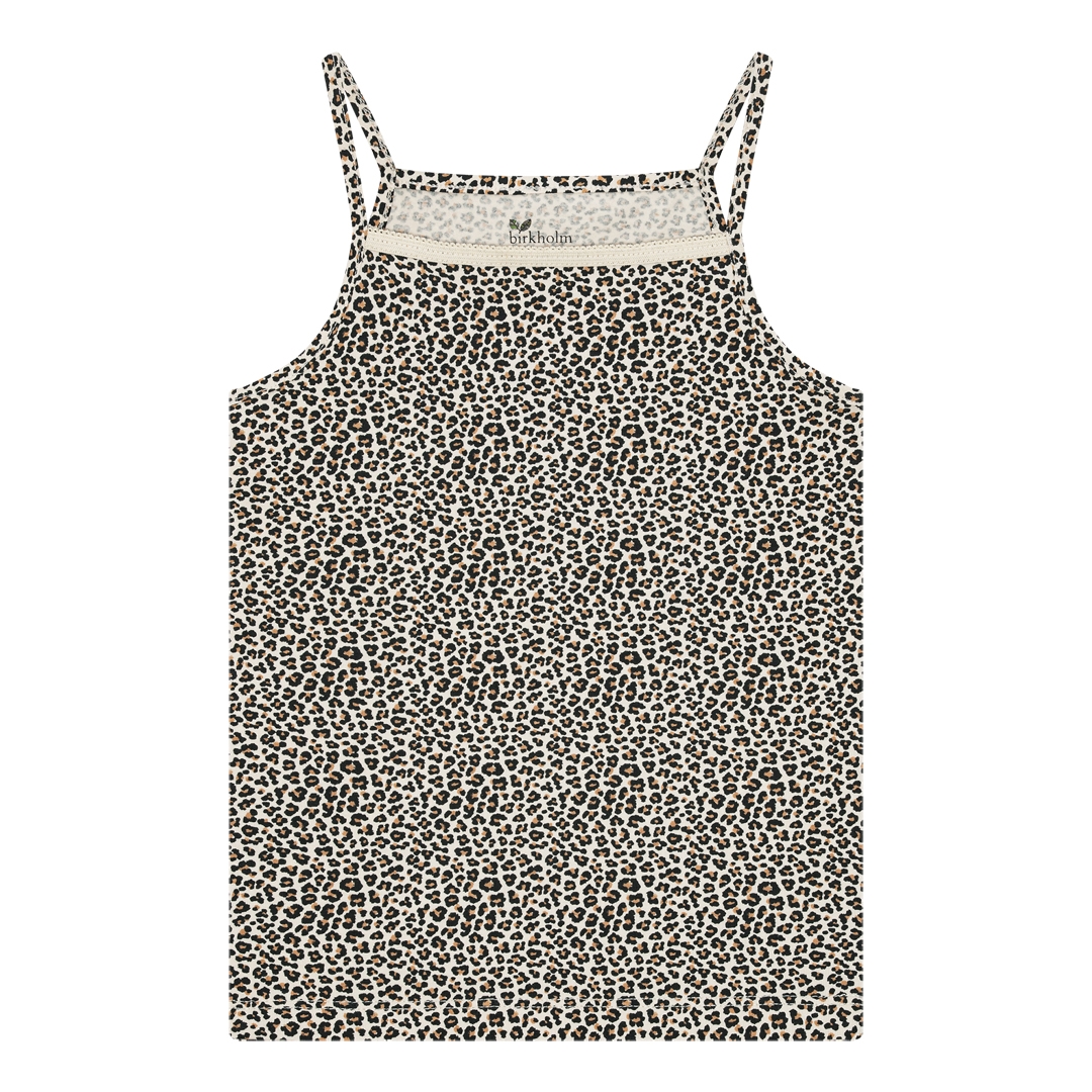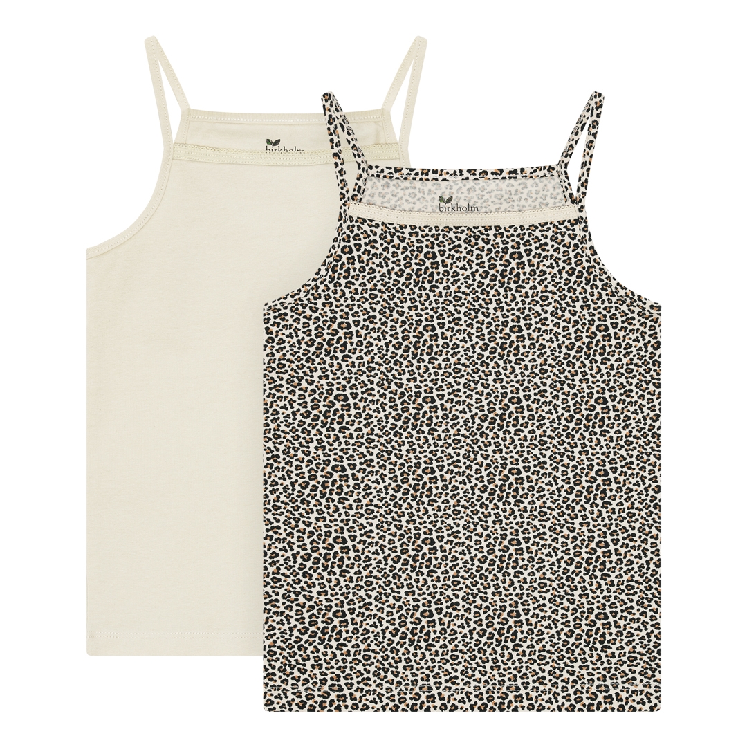 I denne pakke får du 2 strop toppe til piger fra det danske mærke Birkholm. Den ene har et fedt allover leopard print, og den anden er i en skøn cremet farve. Super blød kvalitet, blondekant ved brystet og en perfekt pasform der sidder godt til uden at klemme.