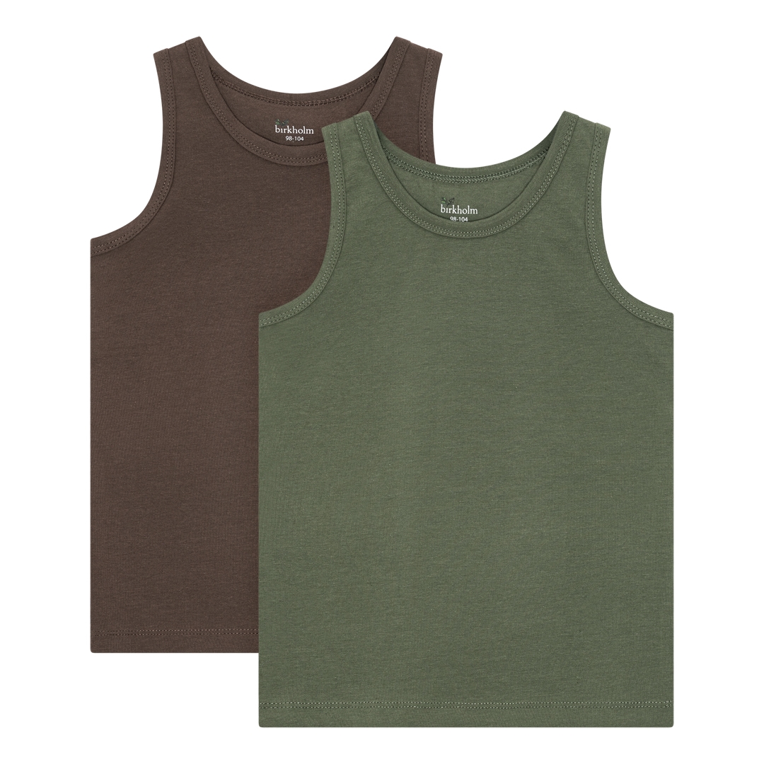 BIRKHOLM 2-Pak Tanktops Oliven Grøn & Chokolade Brun
