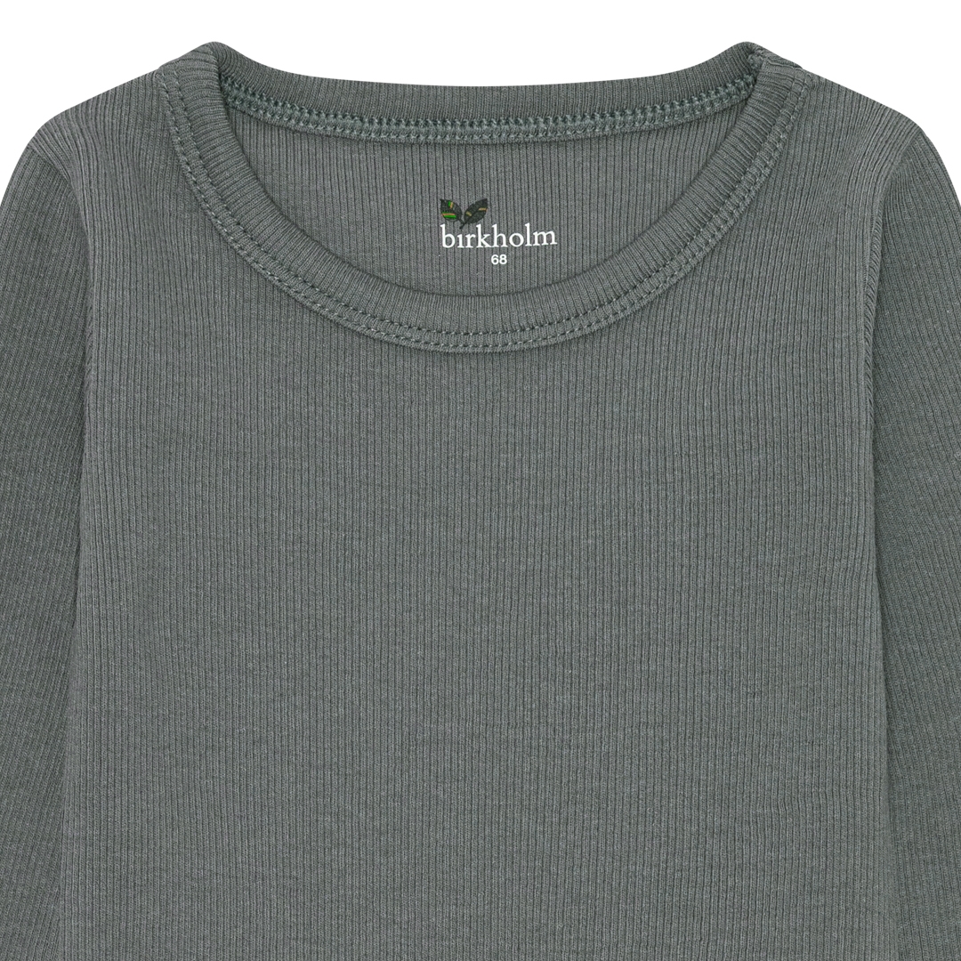 Grå langærmet rib body fra det danske mærke Birkholm. Lavet med masser af stræk i stoffet, så den sidder godt til uden at klemme. Super høj kvalitet, dejligt blødt stof og god åndbarhed. Et must-have til ungernes basis garderobe.