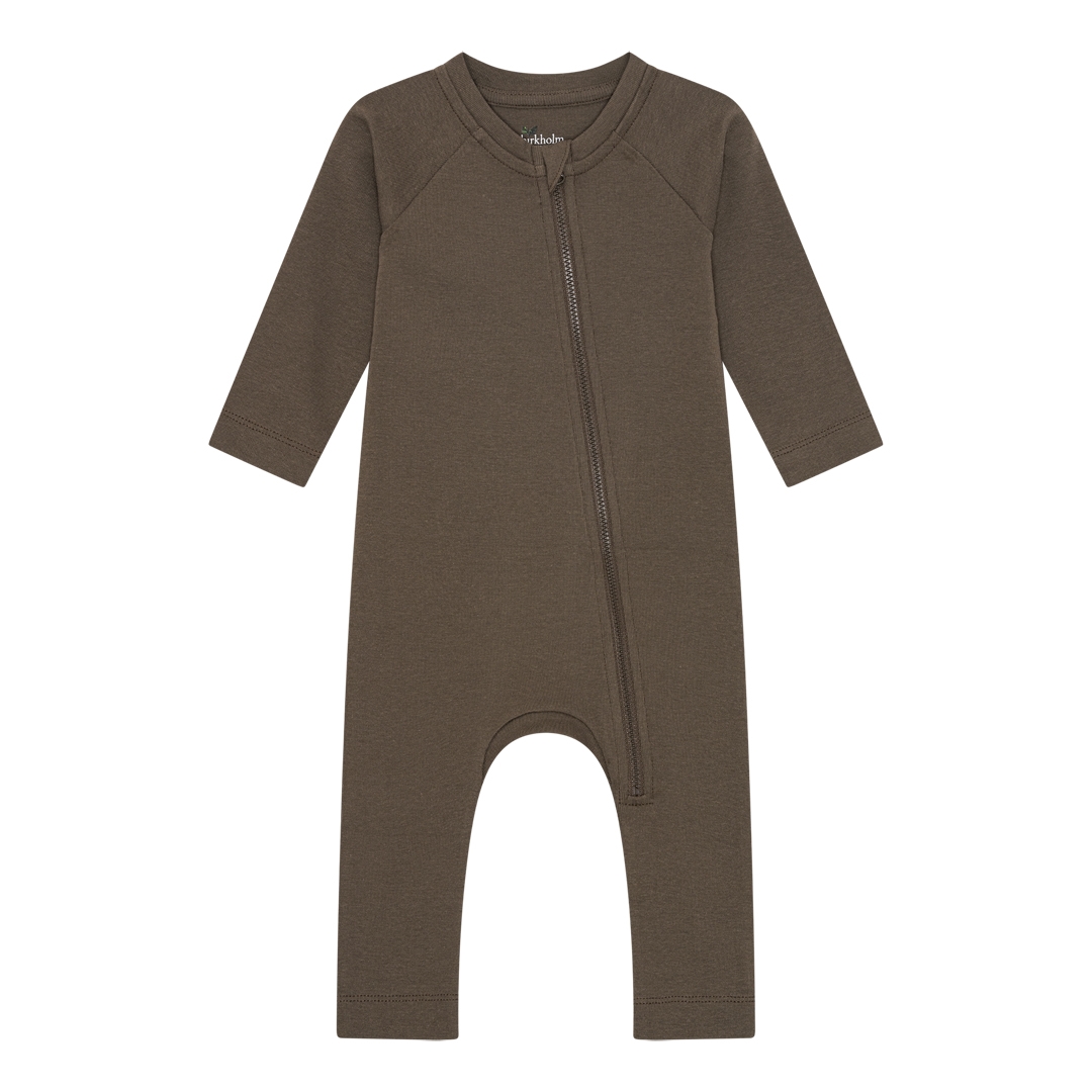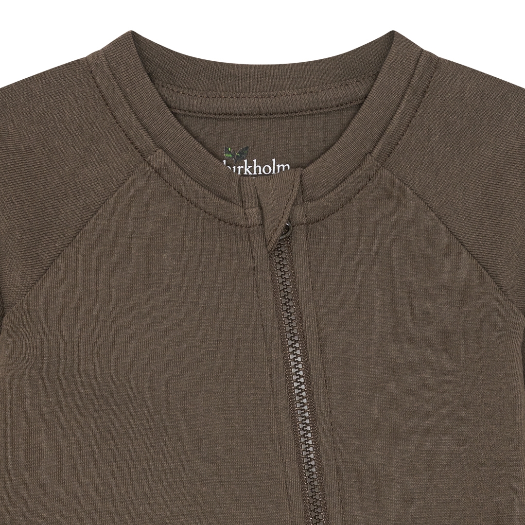 Super lækker brun natdragt fra det danske mærke Birkholm. Natdragten har lange ærmer, rund hals og smarte fødder der kan foldes af og på efter behov. Dragten lukkes ned langs maven med lynlås. Den lille beskytter øverst sikrer at man ikke kommer til at køre lynlåsen ind i huden.