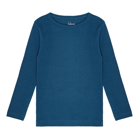 Blå langærmet rib bluse fra det danske mærke Birkholm. Lavet med masser af stræk i stoffet, så den sidder godt til uden at klemme. Super høj kvalitet, dejligt blødt stof og god åndbarhed. Et must-have til ungernes basis garderobe.