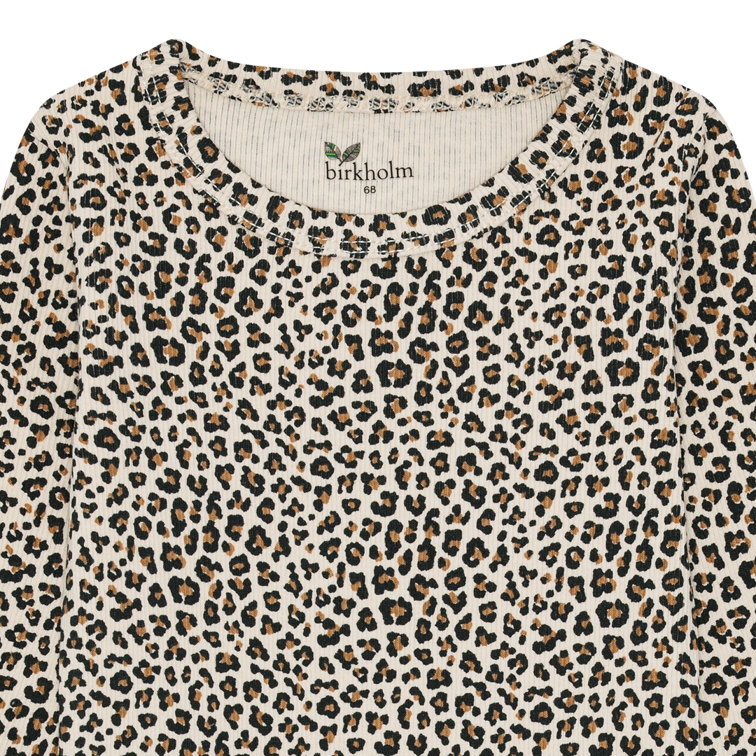 Rib body fra det danske mærke Birkholm med at skønt allover leopard print. Lavet med masser af stræk i stoffet, så den sidder godt til uden at klemme. Super høj kvalitet, dejligt blødt stof og god åndbarhed. Et must-have til ungernes basis garderobe.