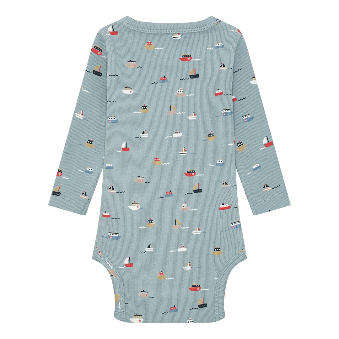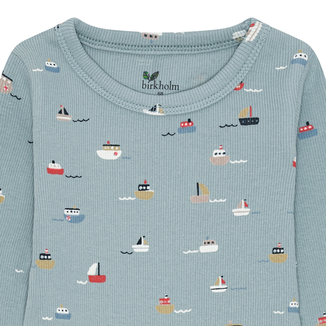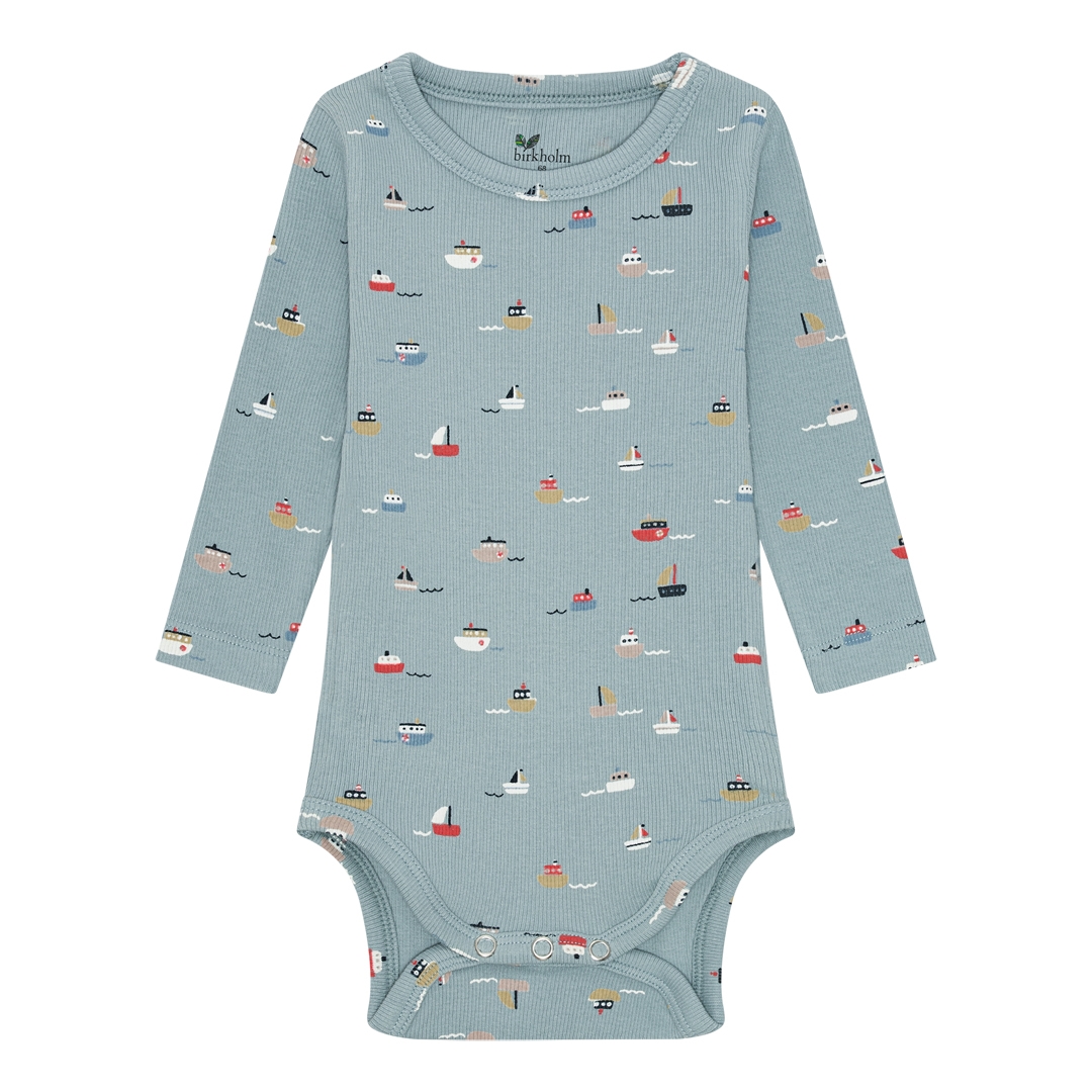 Rib body fra det danske mærke Birkholm med at skønt allover print af skibe. Lavet med masser af stræk i stoffet, så den sidder godt til uden at klemme. Super høj kvalitet, dejligt blødt stof og god åndbarhed. Et must-have til ungernes basis garderobe.