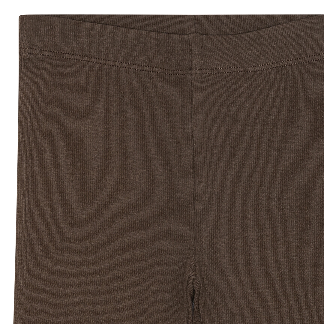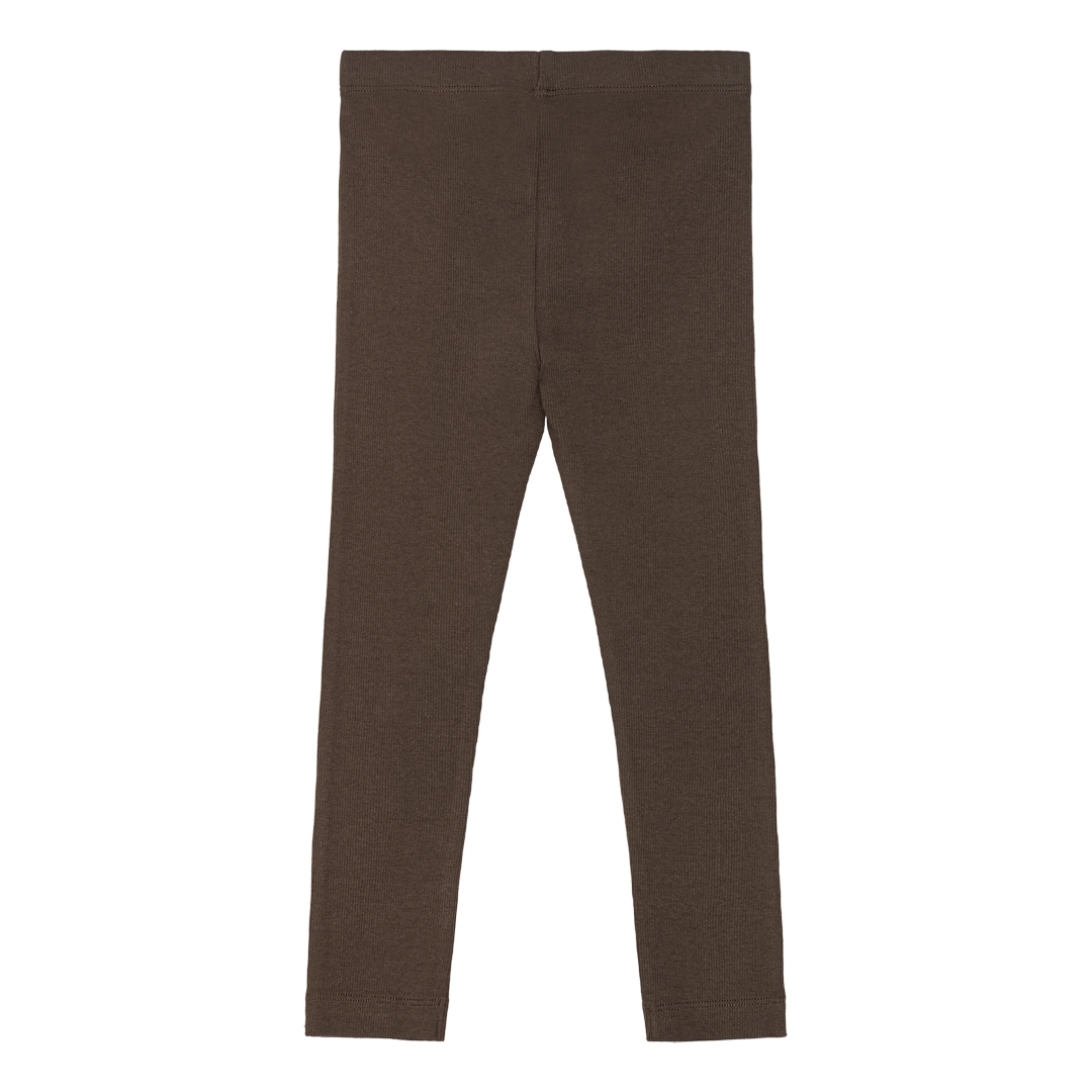 Brune rib leggings fra det danske mærke Birkholm. Lavet med masser af stræk i stoffet, så de sidder godt til uden at klemme. Super høj kvalitet, dejligt blødt stof og god åndbarhed. Et must-have til ungernes basis garderobe.