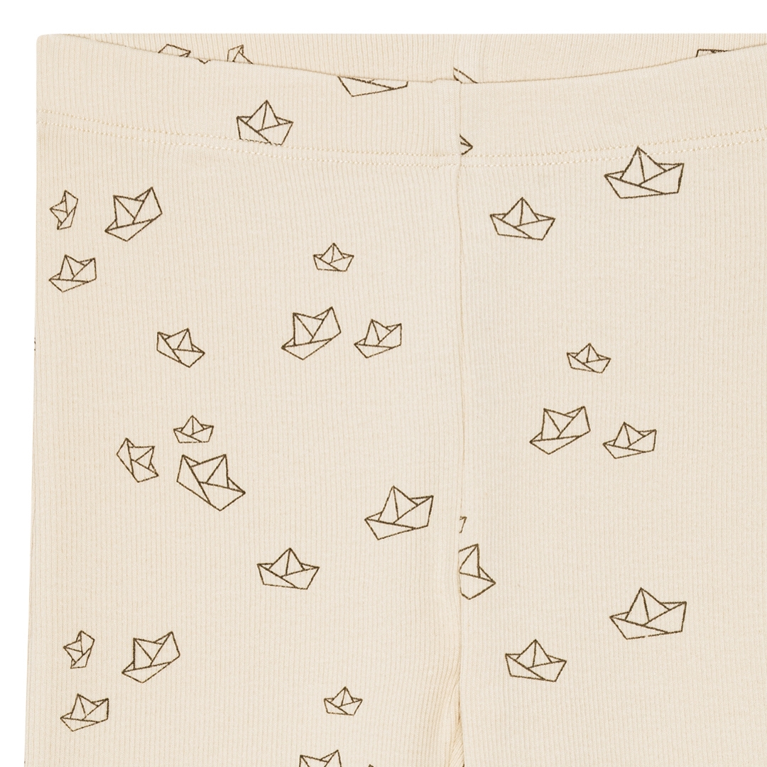 Rib leggings fra det danske mærke Birkholm med et skønt allover print af papirsbåde. Lavet med masser af stræk i stoffet, så de sidder godt til uden at klemme. Super høj kvalitet, dejligt blødt stof og god åndbarhed. Et must-have til ungernes basis garderobe.