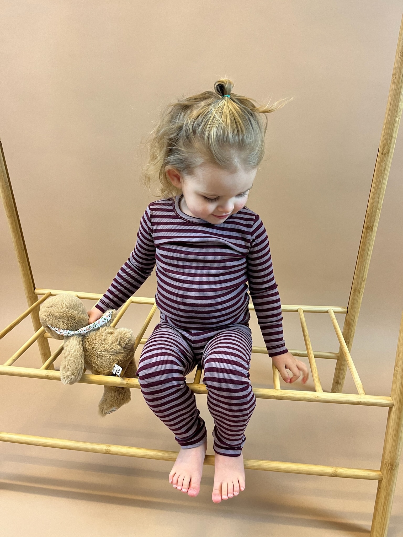 BIRKHOLM Stribet Rib Body Due Lilla & Blomme Lilla