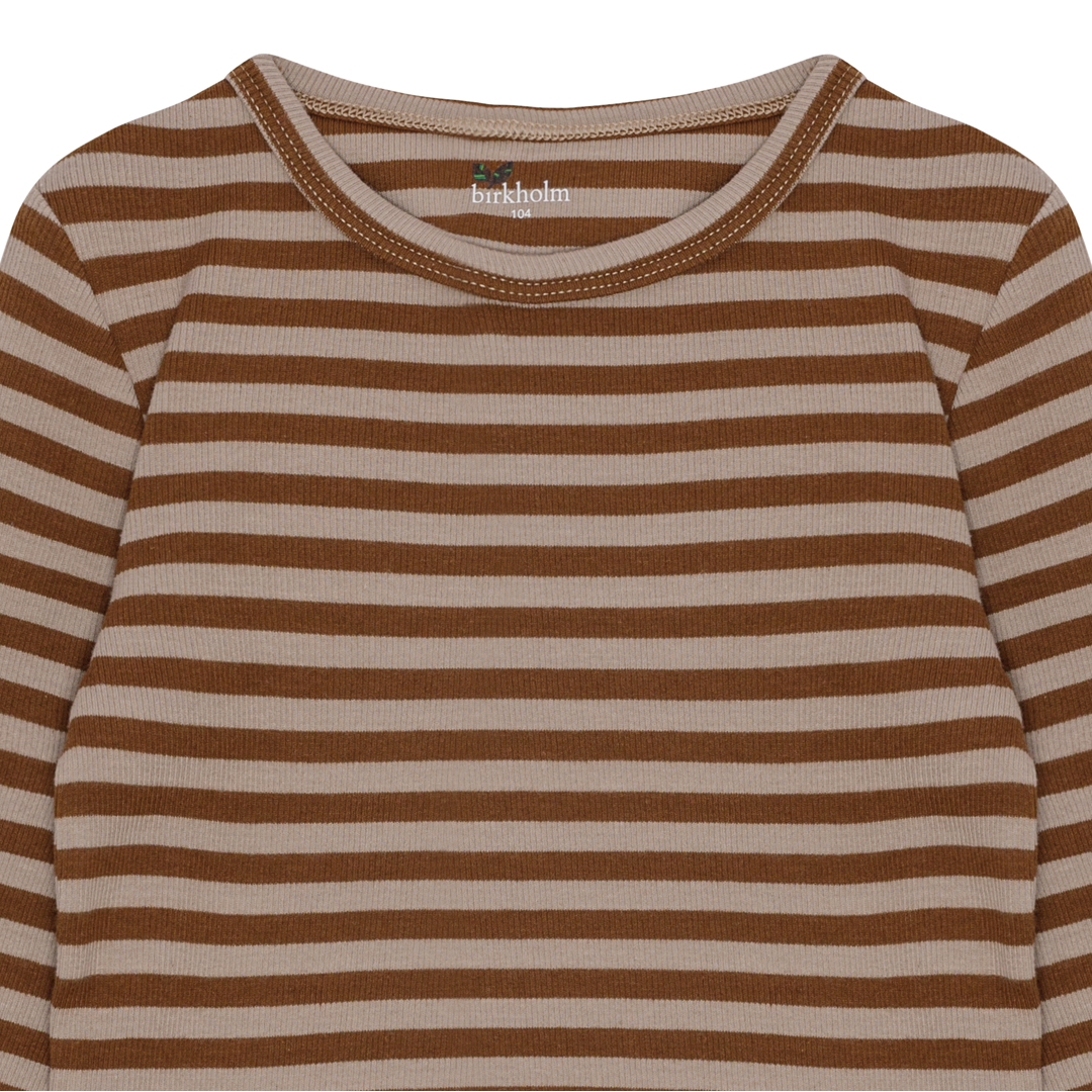 BIRKHOLM Stribet Rib Bluse Kashmir Brun & Varm Brun