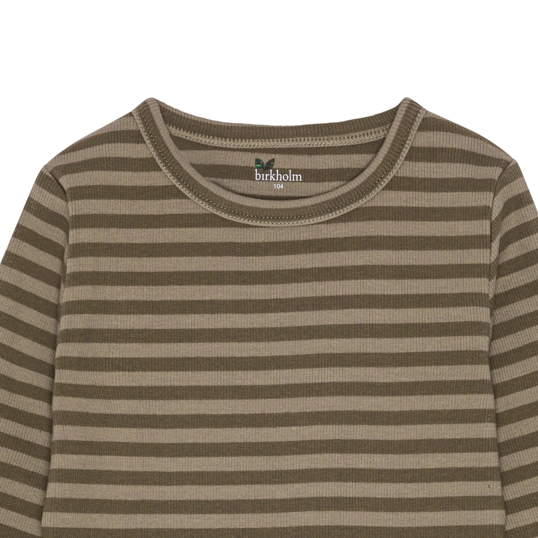 Stribet langærmet rib bluse fra det danske mærke Birkholm. Lavet med masser af stræk i stoffet, så den sidder godt til uden at klemme. Super høj kvalitet, dejligt blødt stof og god åndbarhed. Et must-have til ungernes basis garderobe.