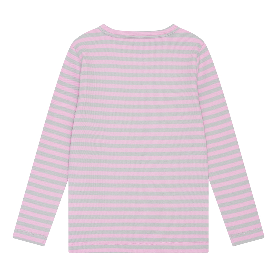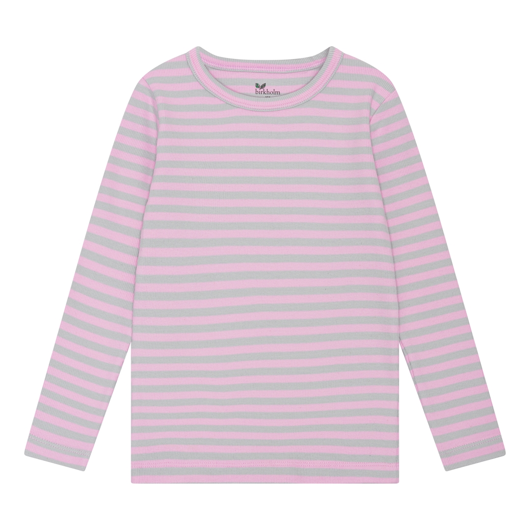 BIRKHOLM Stribet Rib Bluse Meleret Grå & Baby Lyserød