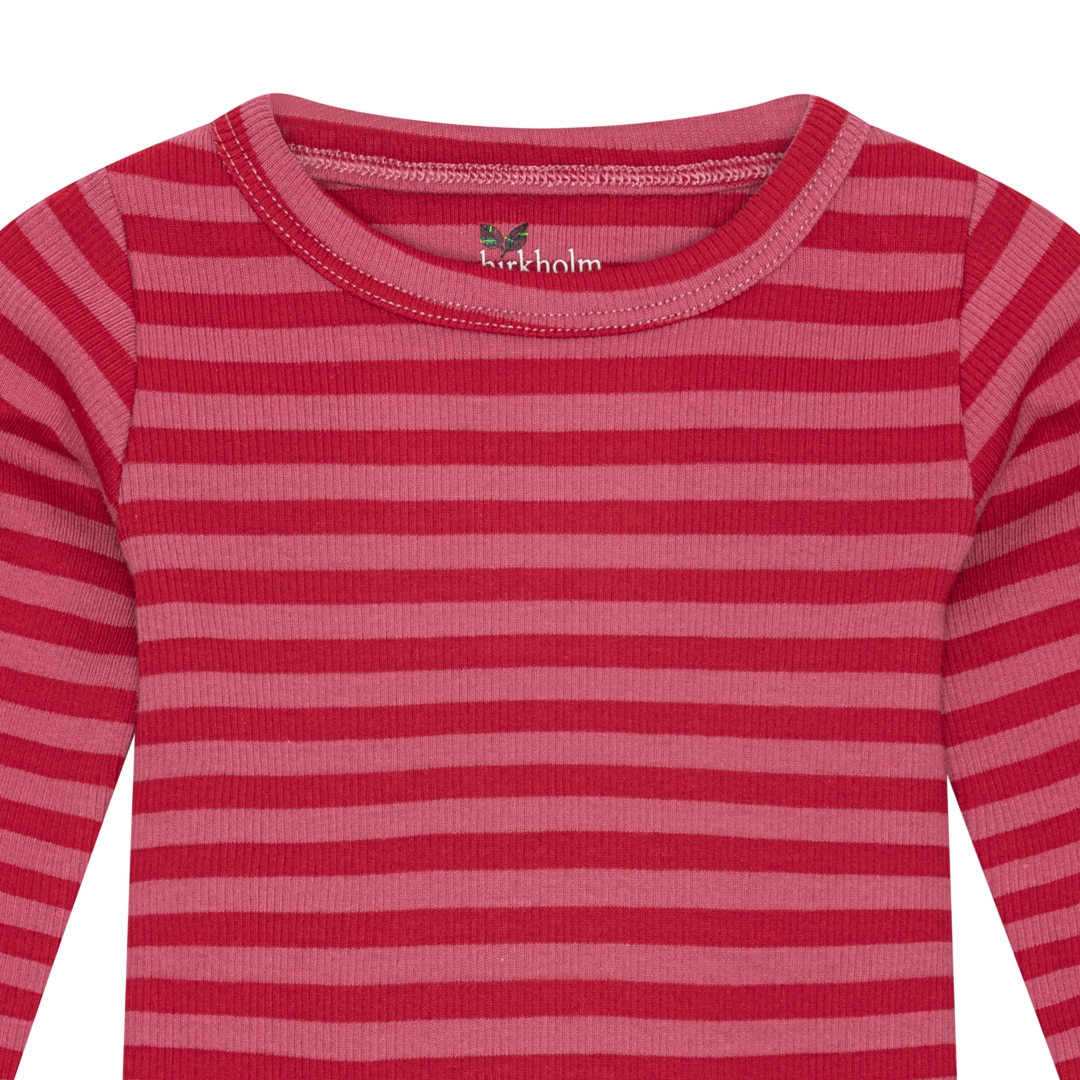 BIRKHOLM Stribet Rib Body Chili Rød & Hindbær Rosa