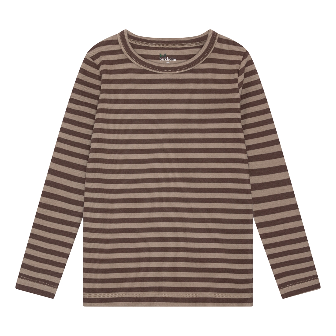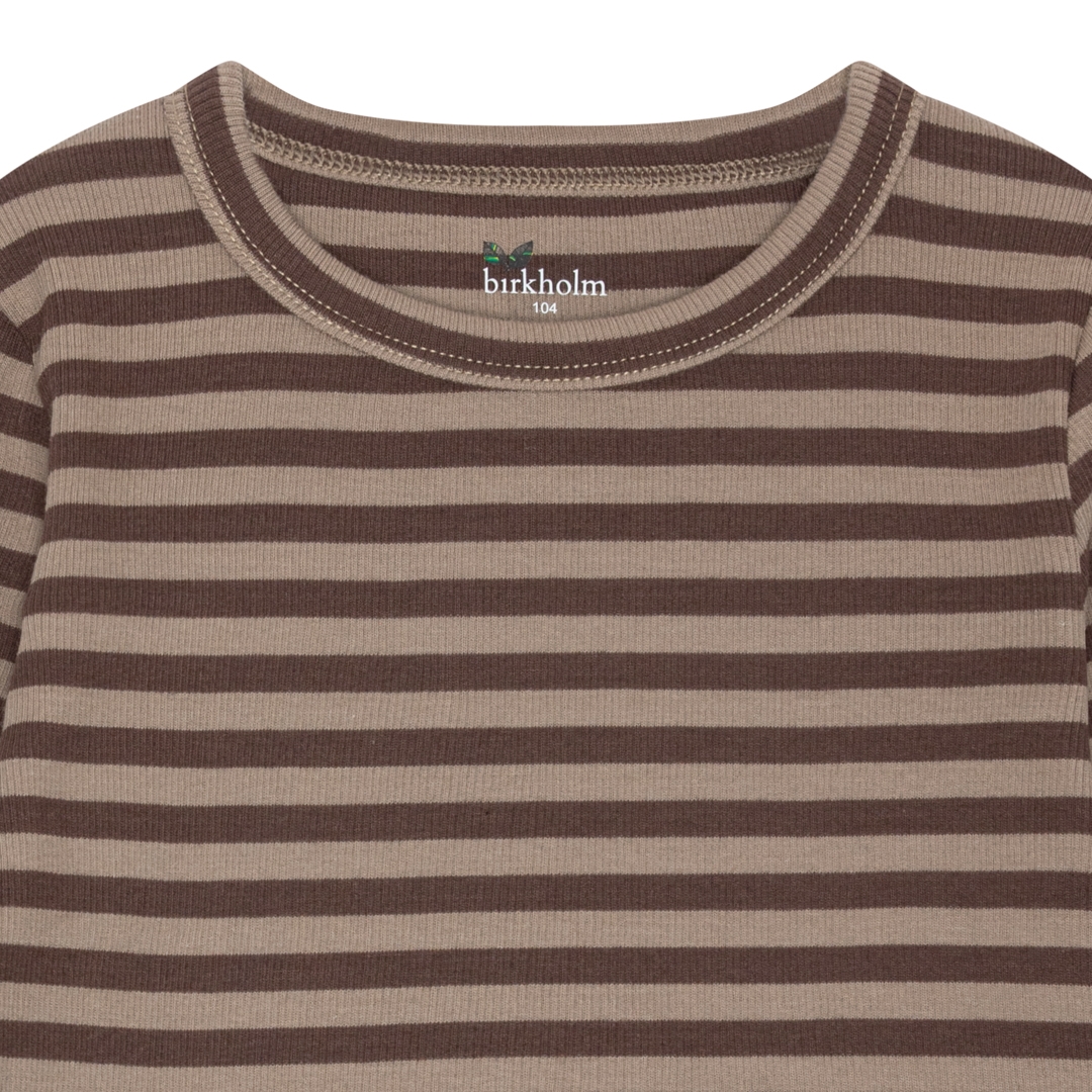 BIRKHOLM Stribet Rib Bluse Kashmir Brun & Chokolade Brun