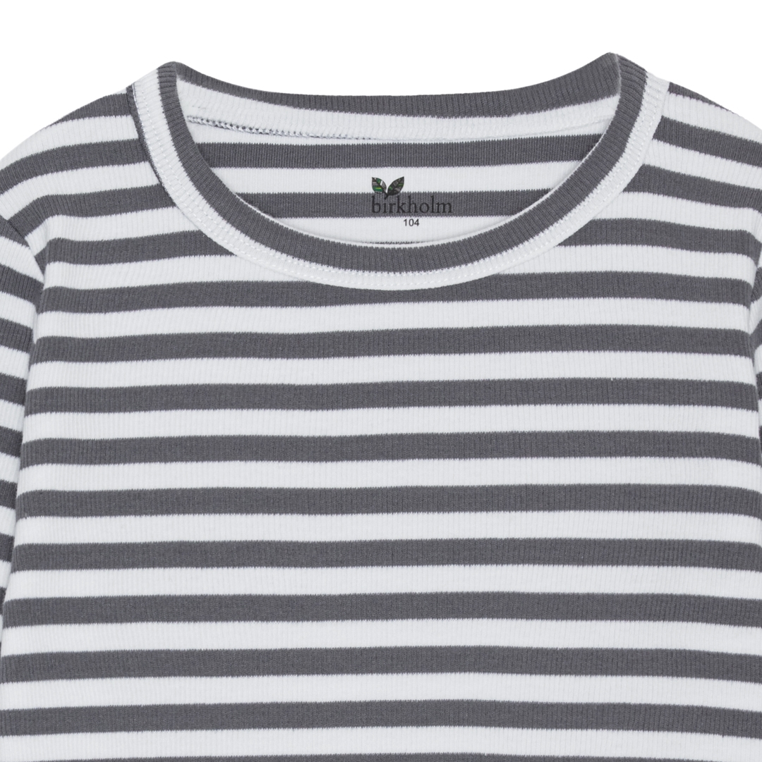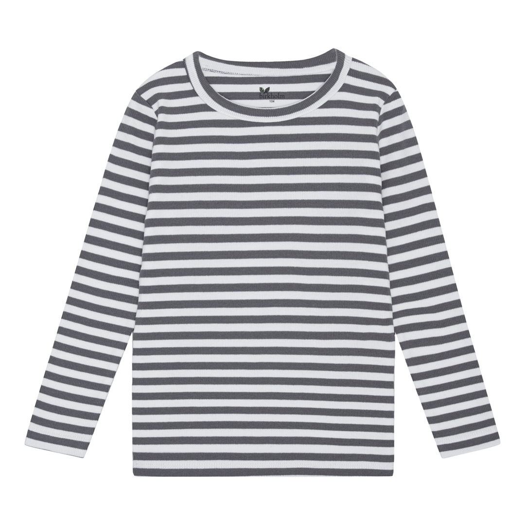 Stribet langærmet rib bluse fra det danske mærke Birkholm. Lavet med masser af stræk i stoffet, så den sidder godt til uden at klemme. Super høj kvalitet, dejligt blødt stof og god åndbarhed. Et must-have til ungernes basis garderobe.