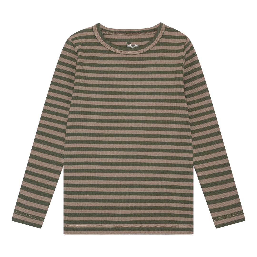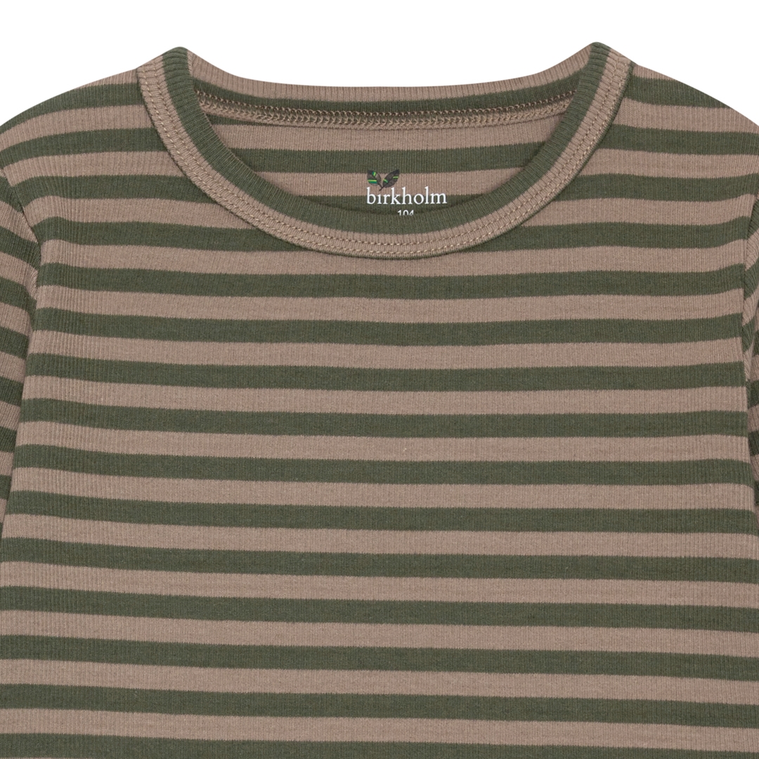 BIRKHOLM Stribet Rib Bluse Kashmir Brun & Oliven Grøn