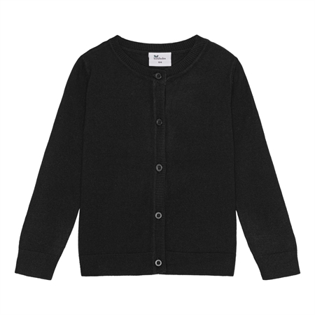 Super fed ensfarvet sort strik cardigan fra det danske mærke Birkholm. Rund hals, lukning med knapper ned langs maven og ribkanter i bunden og ved ærmerne. Den er lavet i en blød blanding af viskose og nylon, og er et absolut must-have i ungernes basis garderobe året rundt.