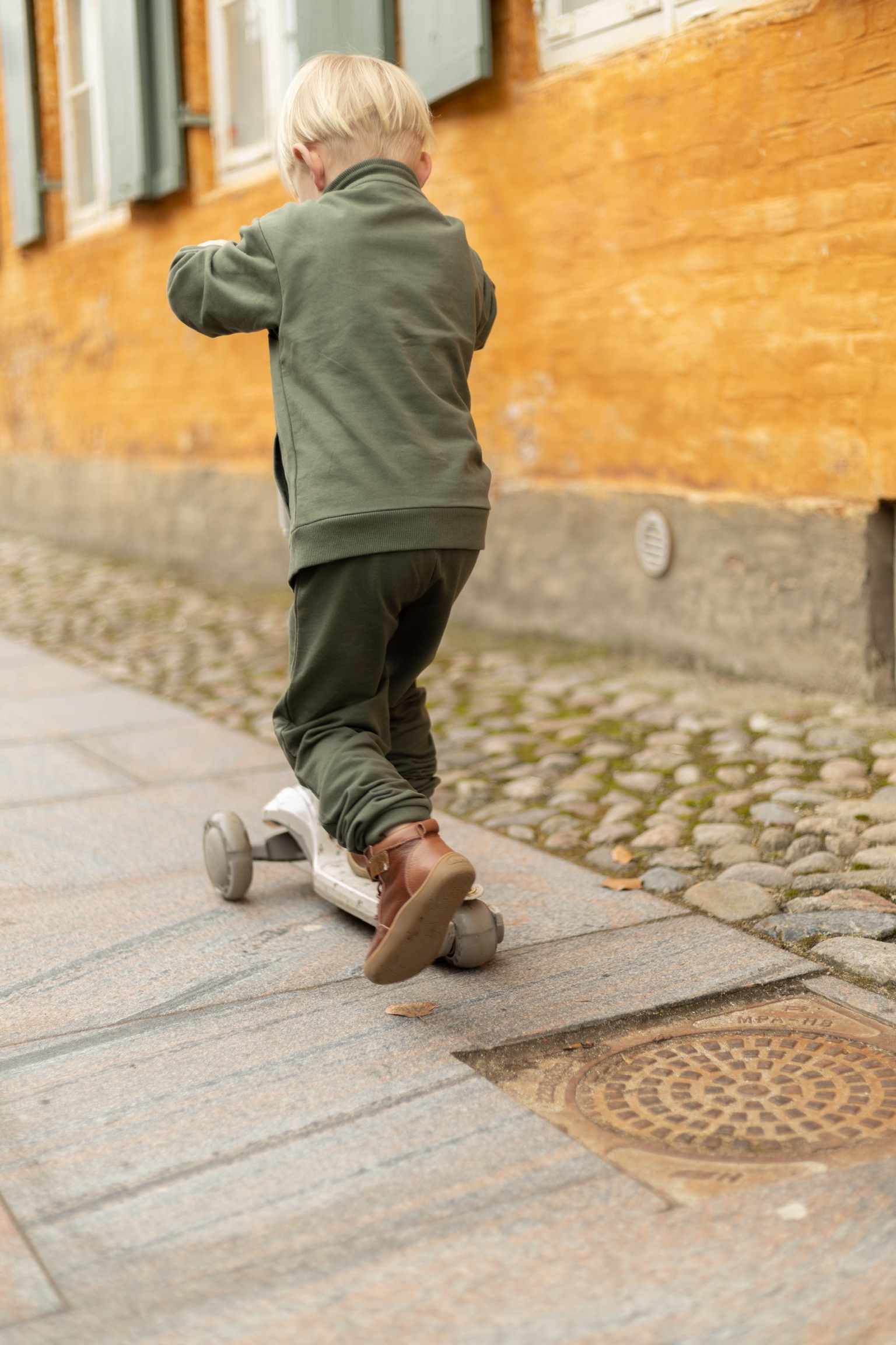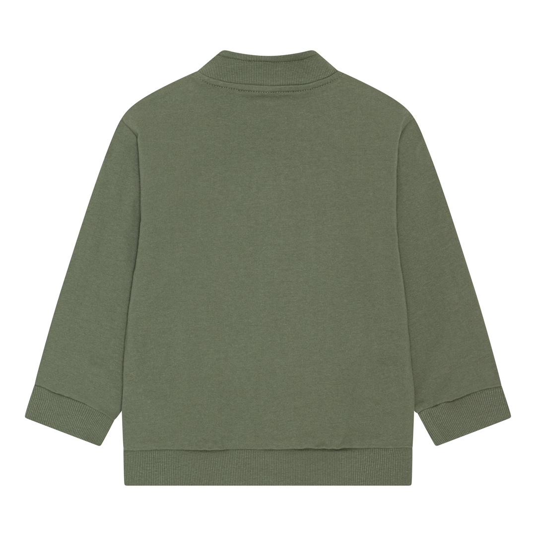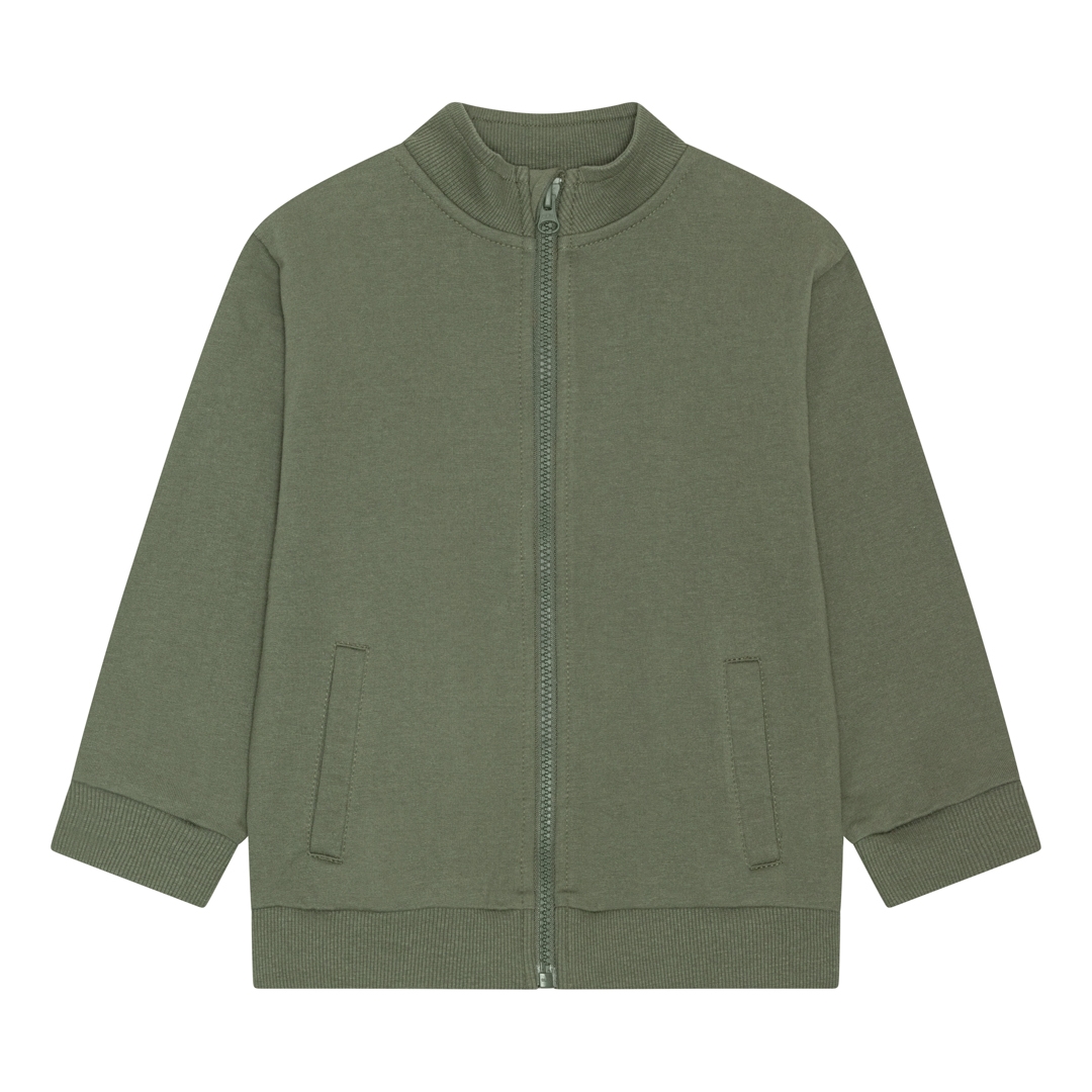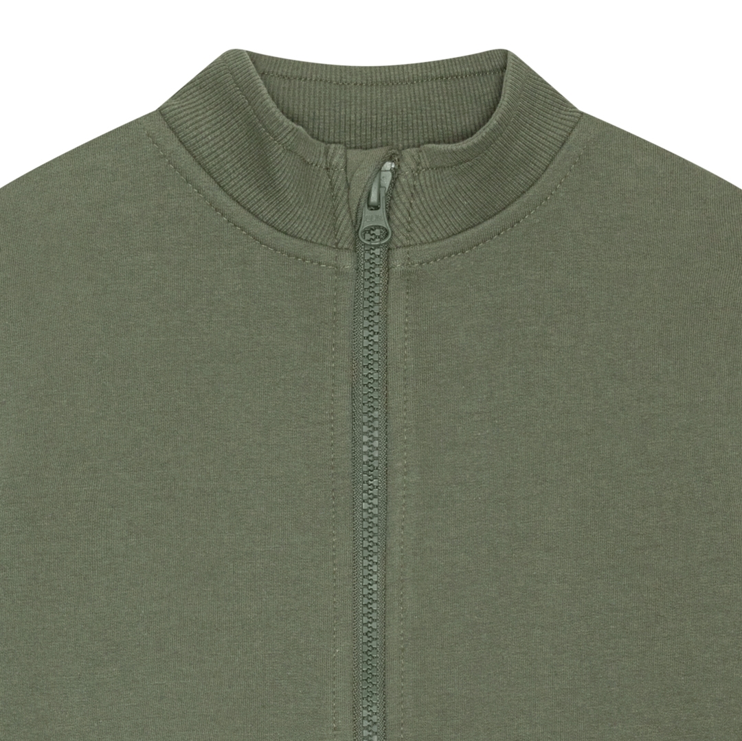 Fantastisk grøn sweat cardigan uden hætte fra det danske mærke Birkholm. Semihøj hals, lange ærmer og rib i alle kanter og lukning med lynlås ned langs maven. Lynlåsen er naturligvis med hagebeskytter øverst. Kvaliteten af denne cardigan er helt i top, og den er skræddersyet til dagligt aktivt brug. Den har et normalt fit som passer de fleste, og den smarte grønne farve er nem at matche op imod. Et absolut must-have i ungernes basis garderobe.