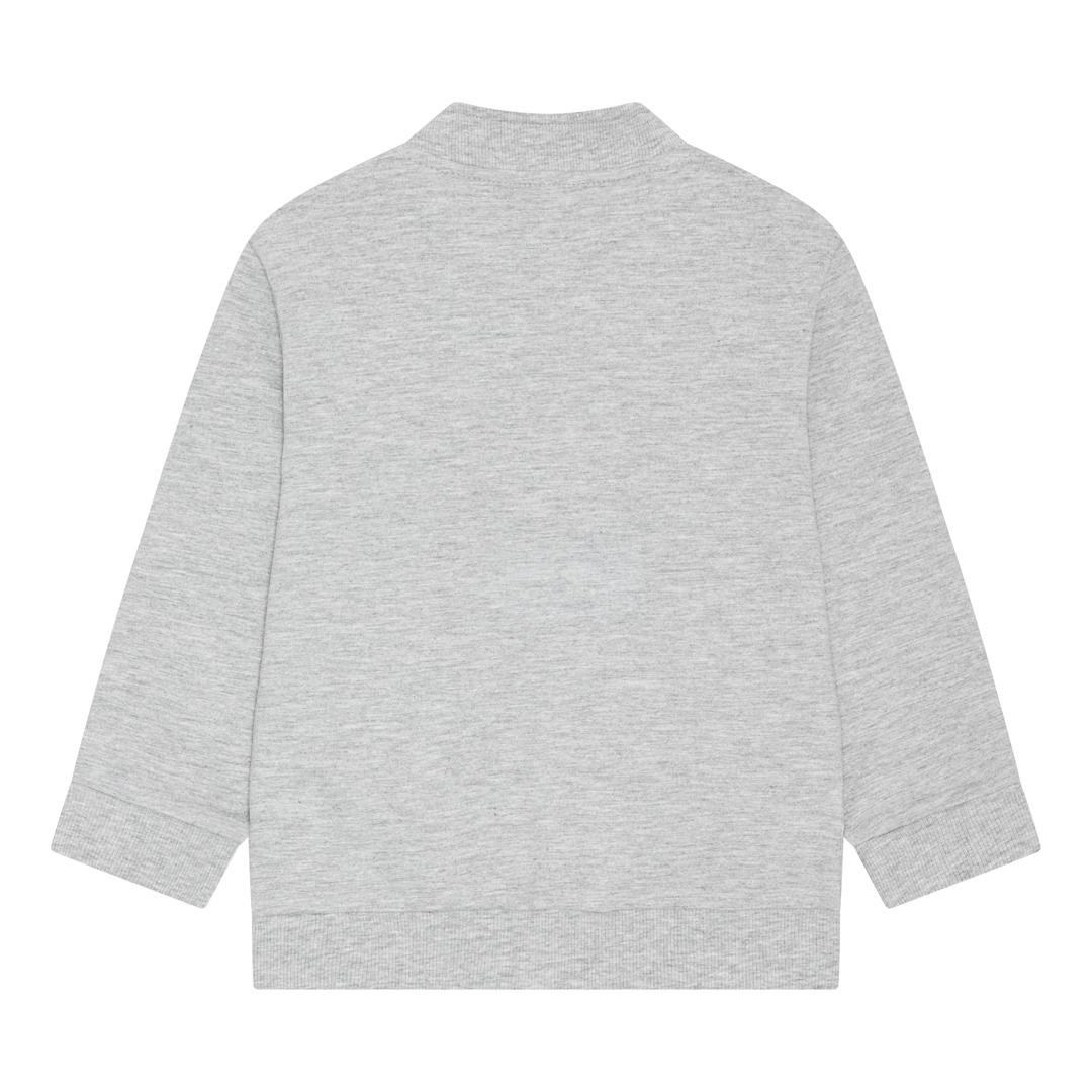 Fantastisk grå sweat cardigan uden hætte fra det danske mærke Birkholm. Semihøj hals, lange ærmer og rib i alle kanter og lukning med lynlås ned langs maven. Lynlåsen er naturligvis med hagebeskytter øverst. Kvaliteten af denne cardigan er helt i top, og den er skræddersyet til dagligt aktivt brug. Den har et normalt fit som passer de fleste, og den smarte grå farve er nem at matche op imod. Et absolut must-have i ungernes basis garderobe.