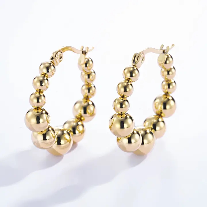 Smukke øreringe med kugler fra Eline L'atelier. Den er i rustfri stål, vandafvisende og bliver ikke sort. Garanteret uden nikkel, uden cadmium, uden blysalte.