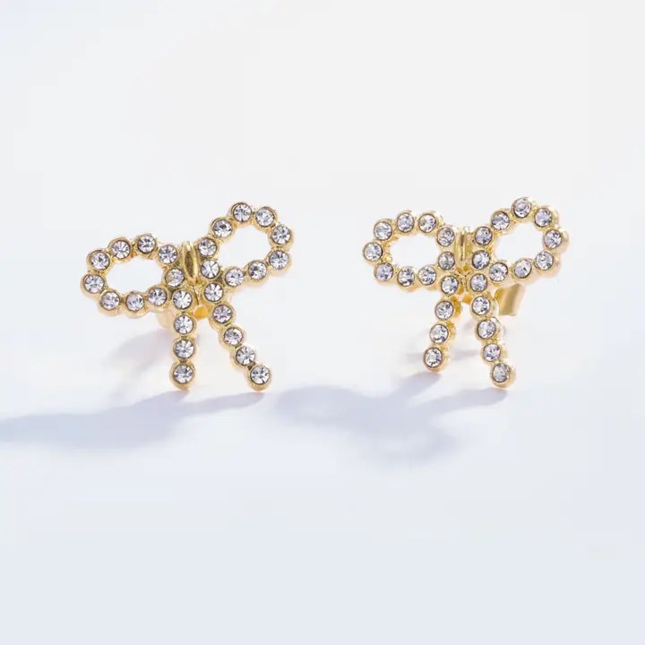 Sødeste øreringe fra Eline L'atelier. De er formet som sløjfeer med små sten i. De er i rustfri stål, vandafvisende og bliver ikke sort. Garanteret uden nikkel, uden cadmium, uden blysalte.