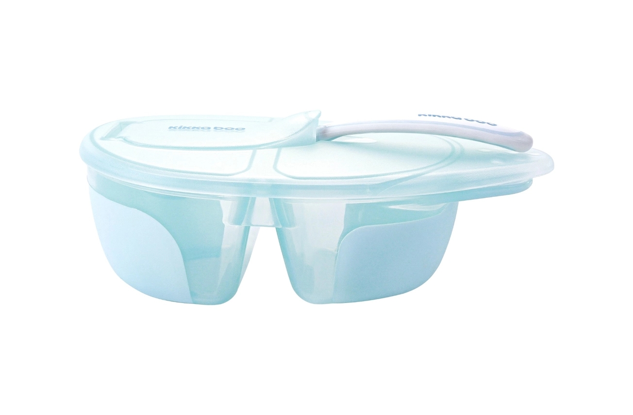 KIKKABOO 2-Rums Skål Med Låg Og Ske BlåKIKKABOO 2-Rums Skål Med Låg Og Ske Blå