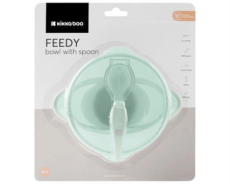 KIKKABOO Skål Med Sugekop Og Ske GrønKIKKABOO Skål Med Sugekop Og Ske Grøn