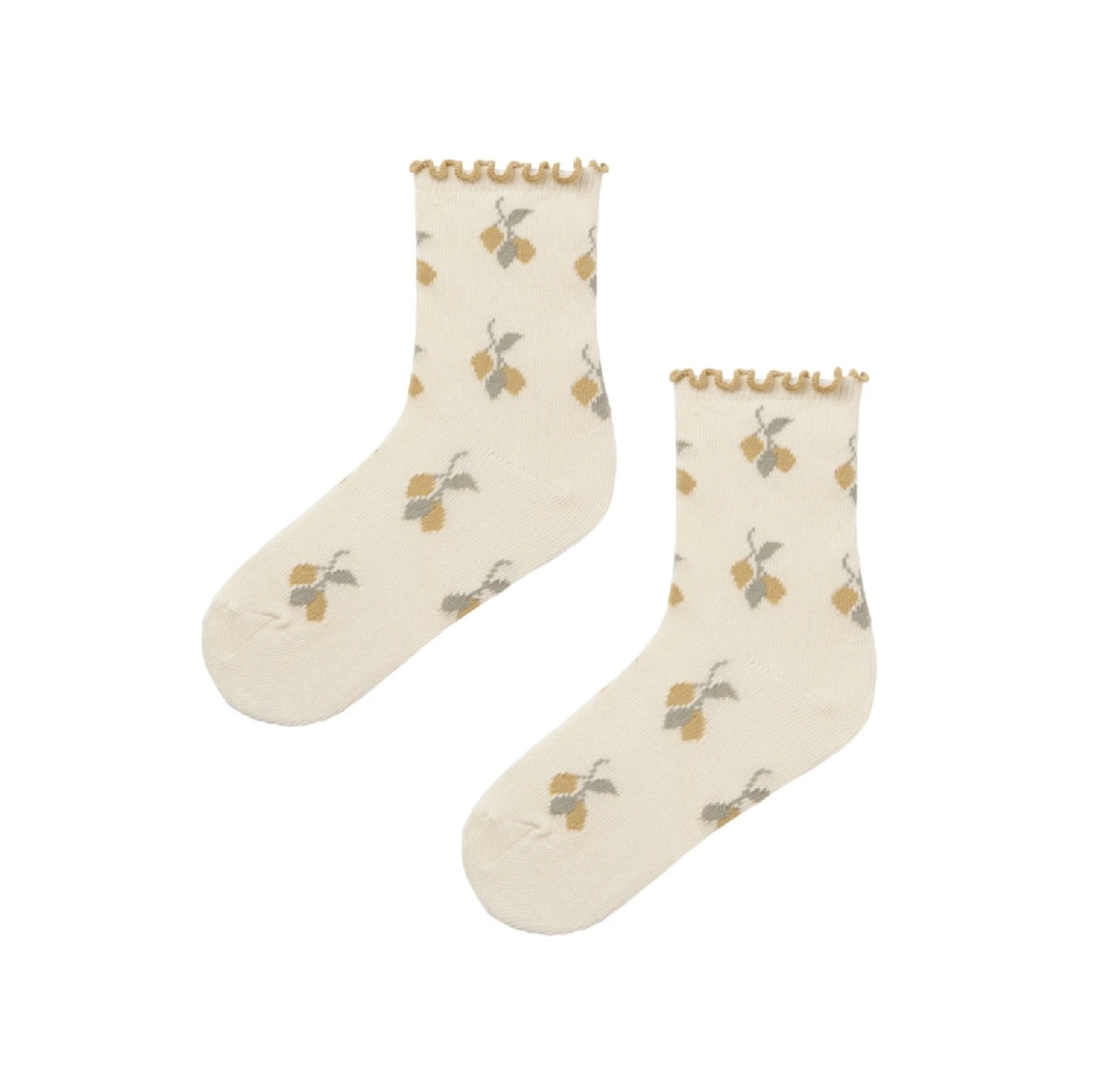Smukkeste små strømper fra Lil Atelier som kommer i en 2-pak. De er i fin rosa farve med skønt blomster print. De er med søde bølgekanter i toppen.
