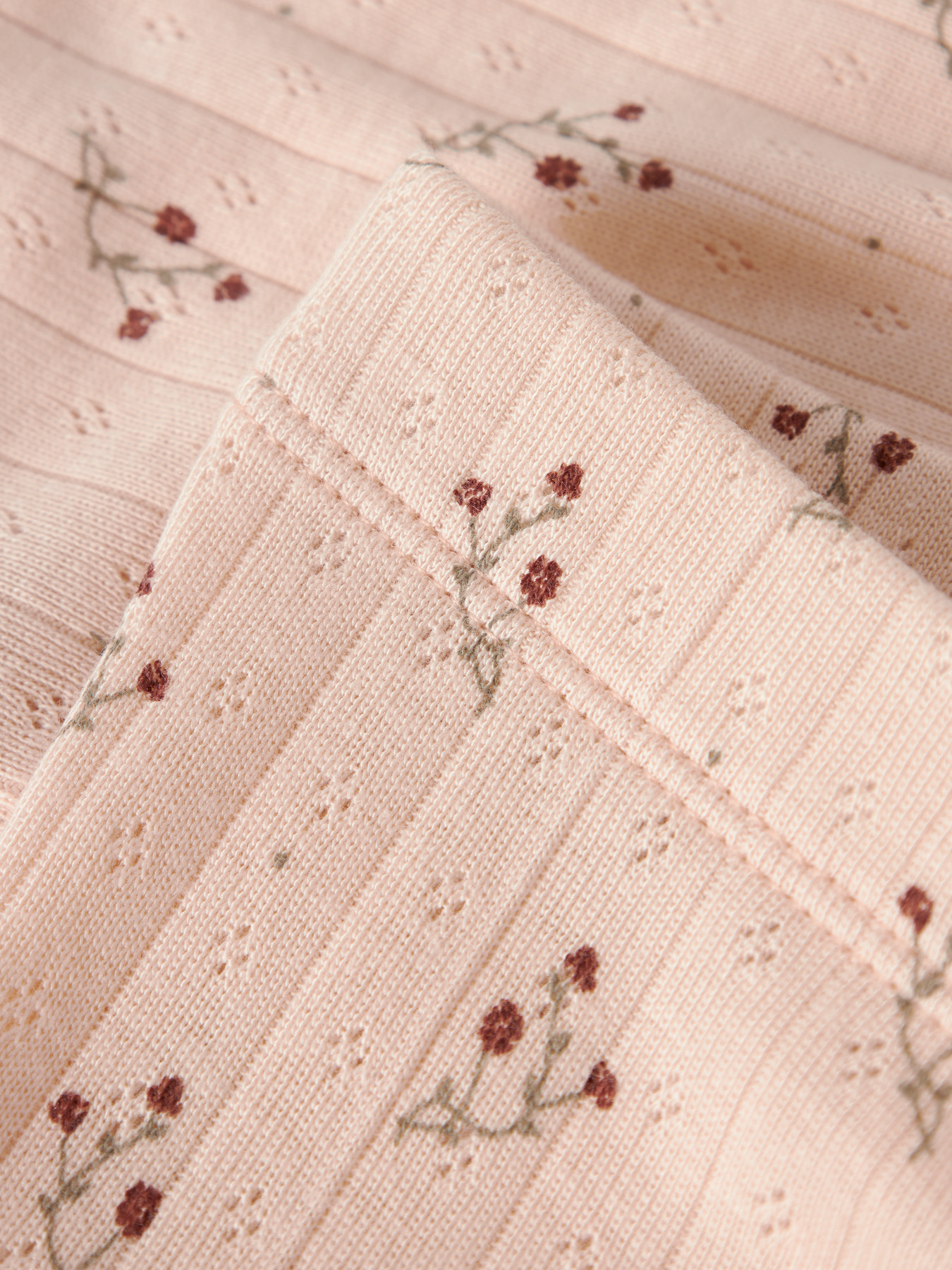 Smukkeste rib leggings fra Lil Atelier. De er i super flot ribbet hulmønster med søde små blomster. De er med elastik i livet.