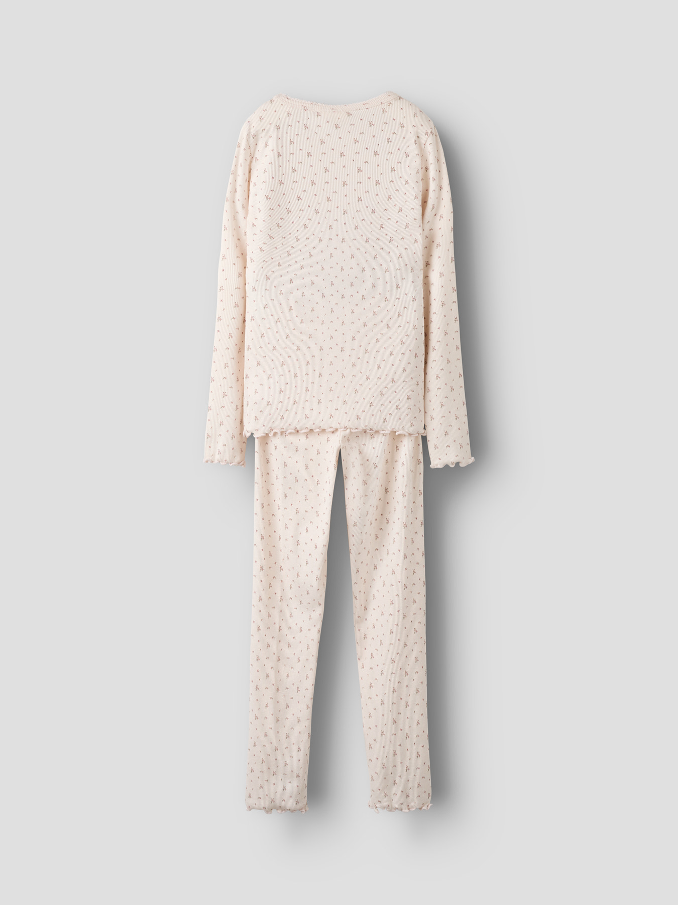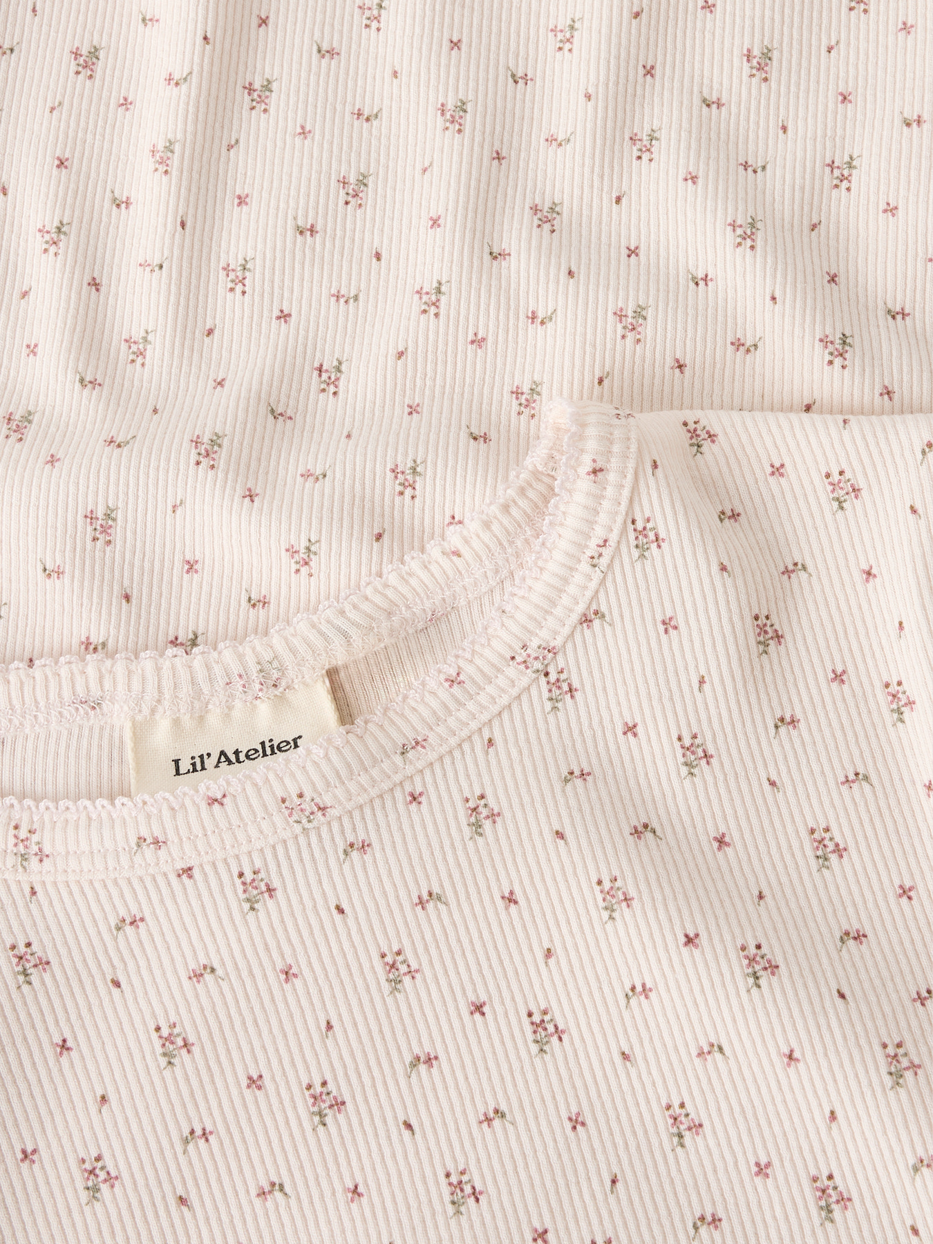 Super smukt rib natsæt fra Lil Atelier med et skønt allover print af små blomster.