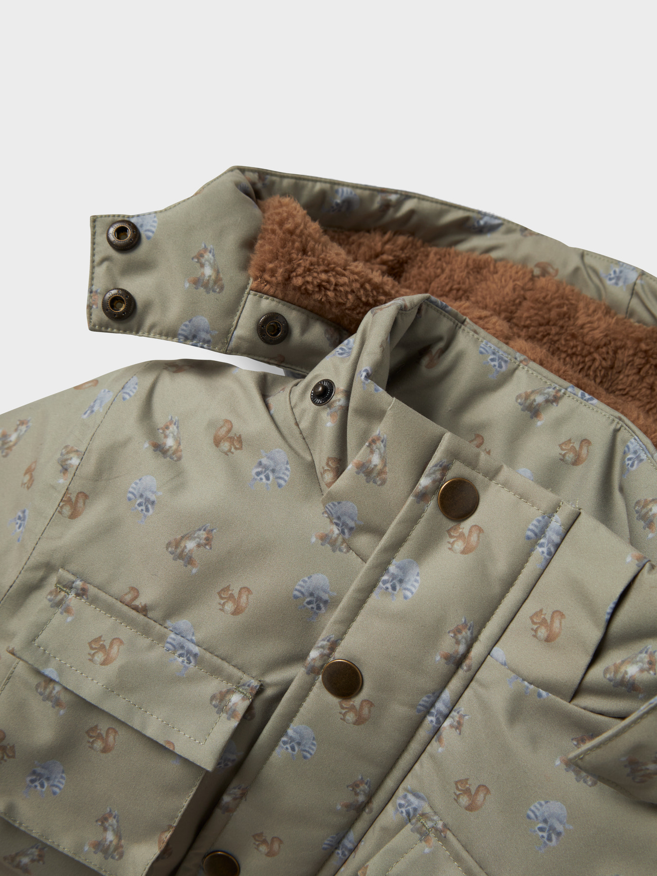 Super lækker vinterjakke fra Lil Atelier med et skønt allover print af skovens dyr.
