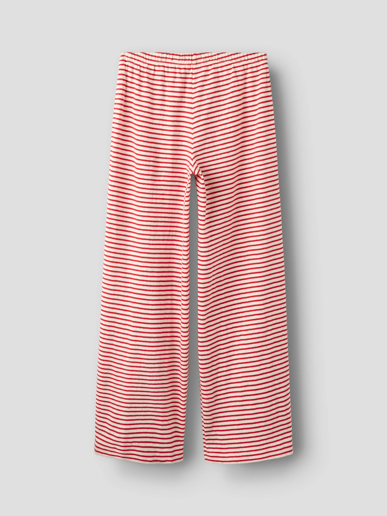 Giv garderoben et friskt og afslappet look med disse bukser i blød kvalitet fra LMTD. Bukserne har snørelukning i taljen, regular pasform over hoften og brede ben, der giver et moderne og behageligt udtryk.