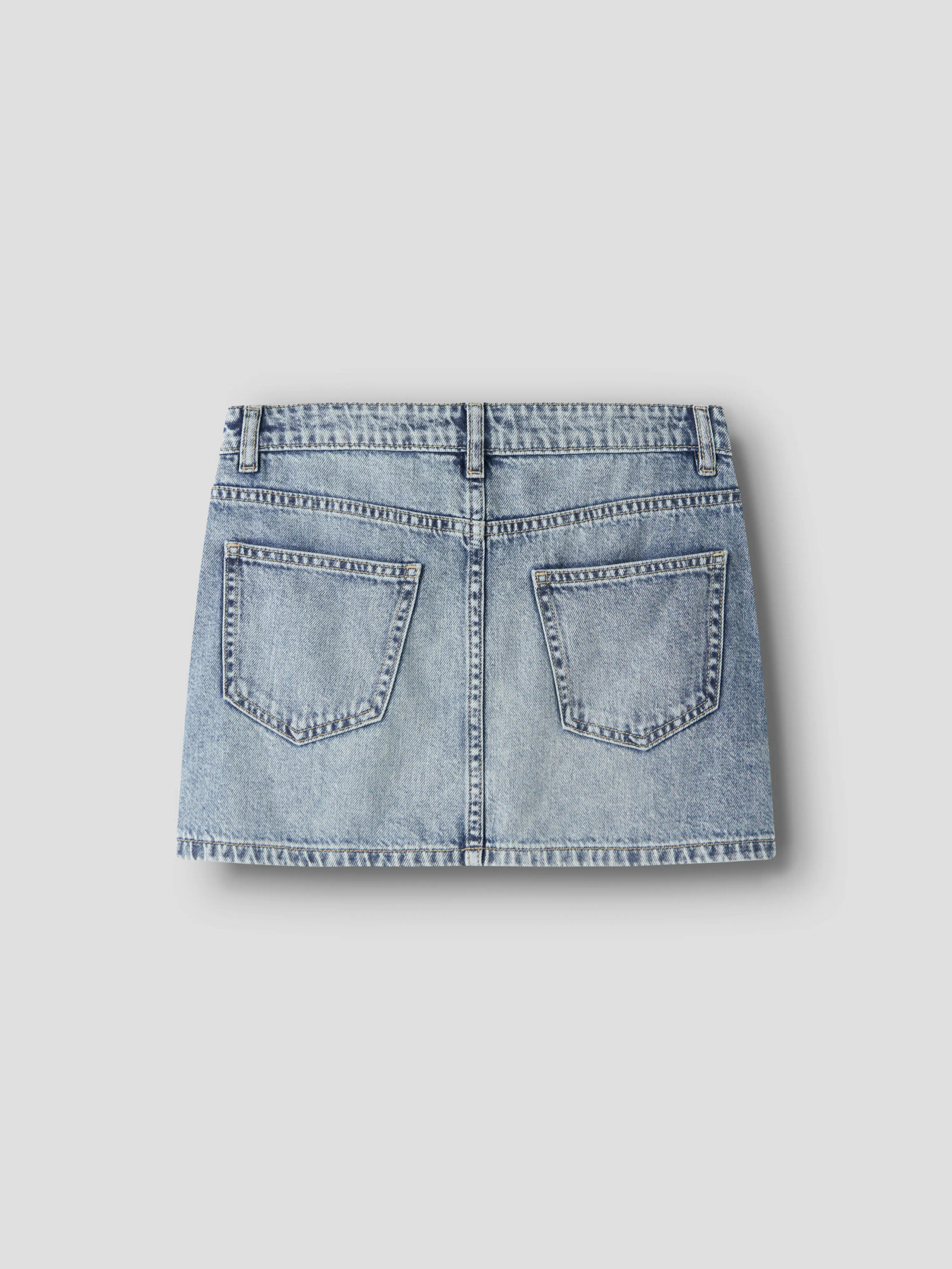 Trendy denim nederdel. Den er lavet i slidstærkt denim, som giver et klassisk og tidløst look med et moderne twist. Nederdelen har mid waist, mini længde samt både for- og baglommer, der giver et afslappet og funktionelt udtryk.