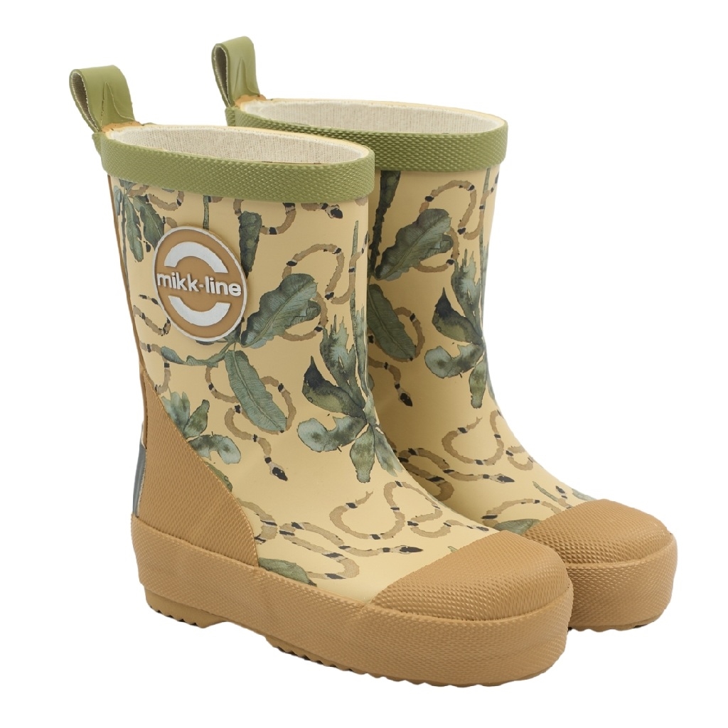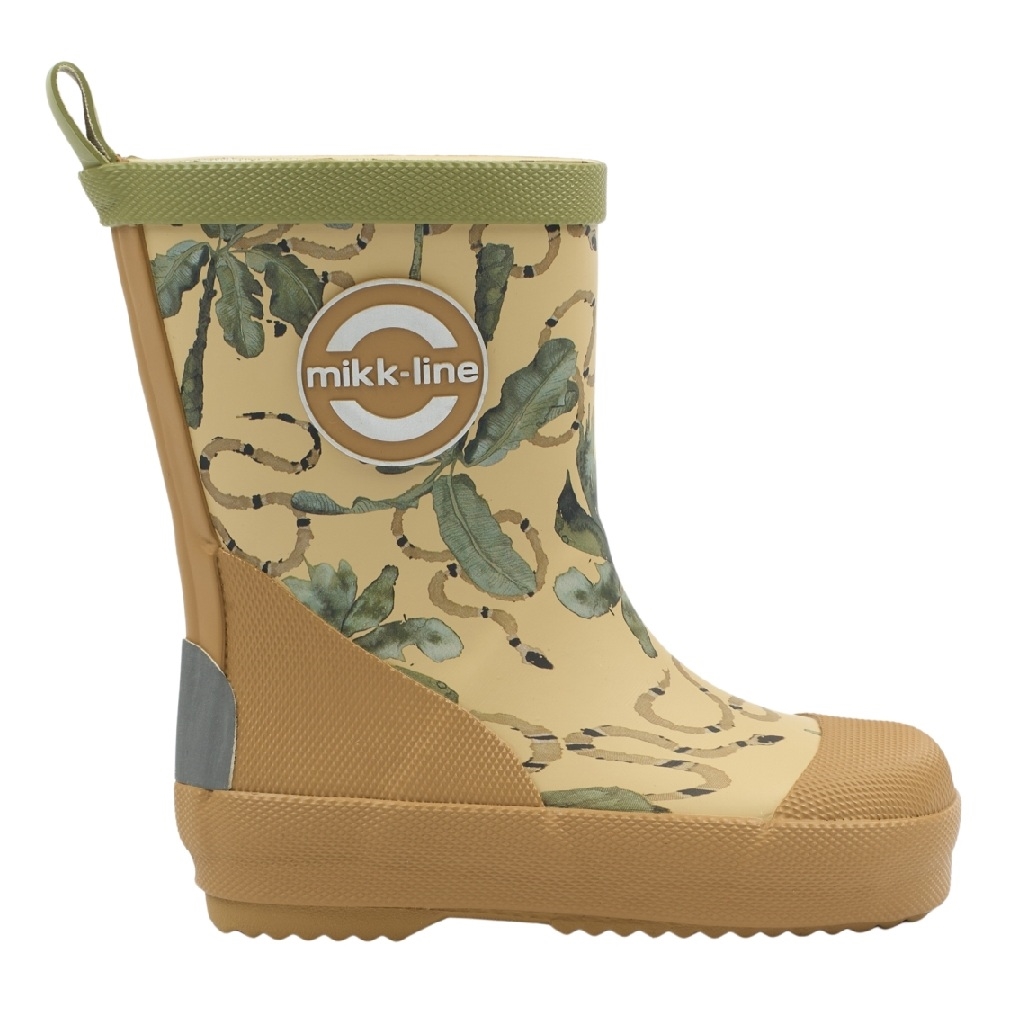 Mikk-line gummistøvler med et fedt jungle print over det hele. De er vandtætte og der er tilføjet ekstra forstærkning på hæl og snude, hvilket gør dem ekstra slidstærke. Der er desuden refleksdetaljer flere steder, så dit barn er mere synligt i trafikken.