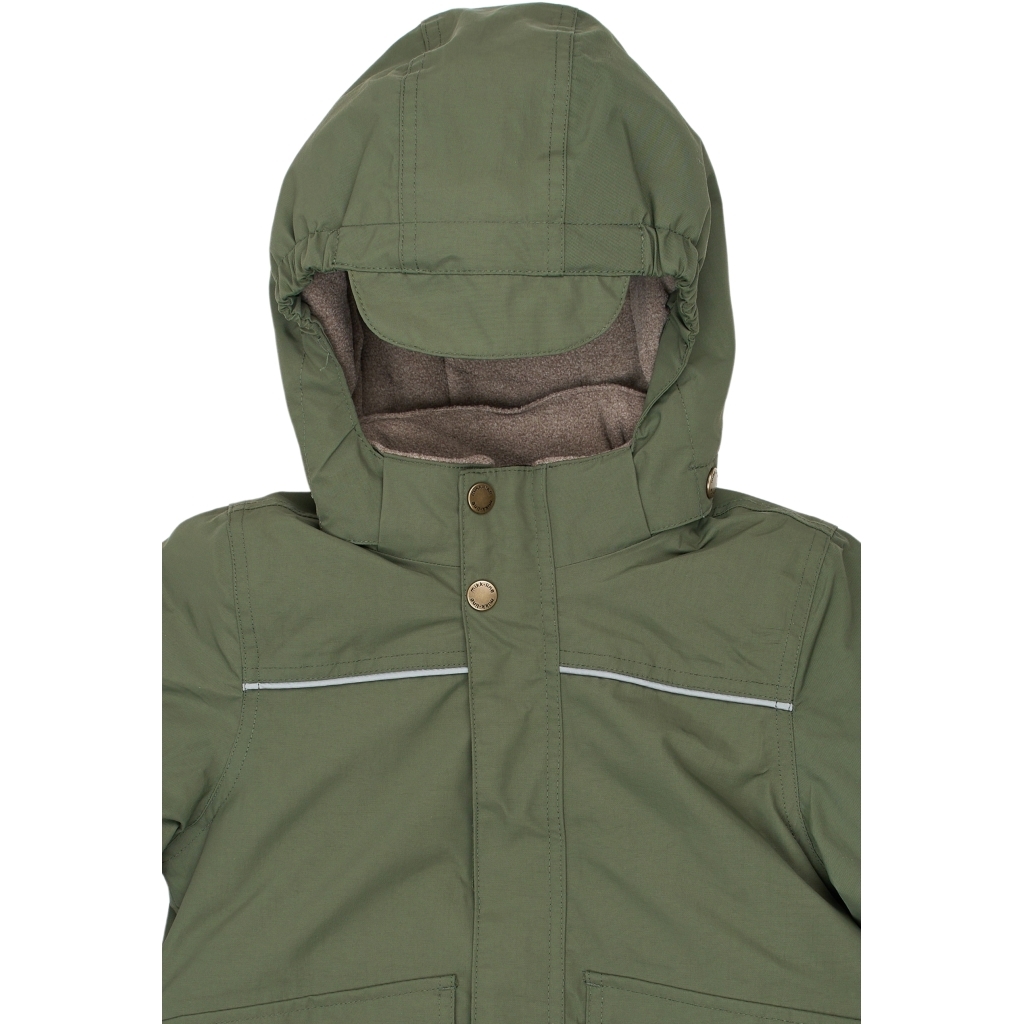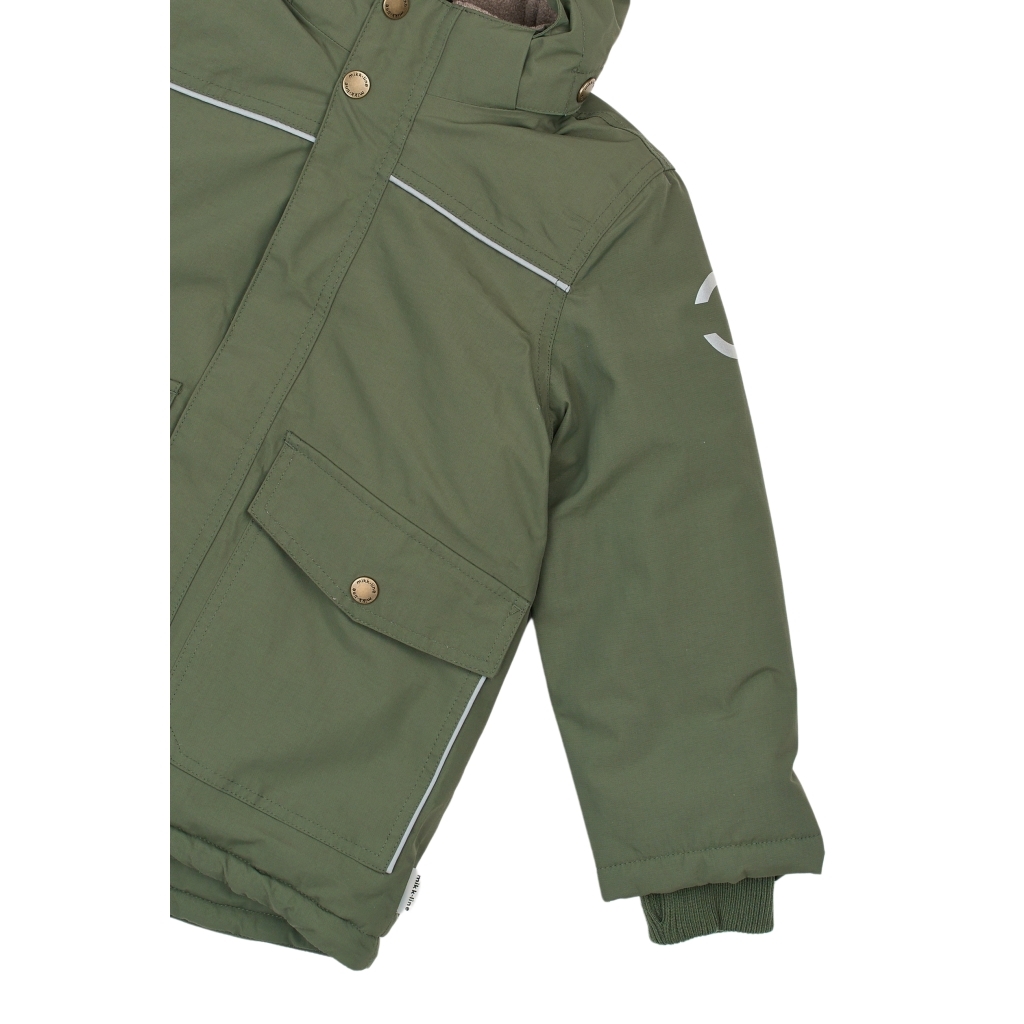 Fantastisk grøn vinterjakke til drenge fra Mikk-Line med 2 lommer foran og elastiske manchetter.