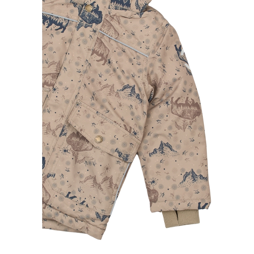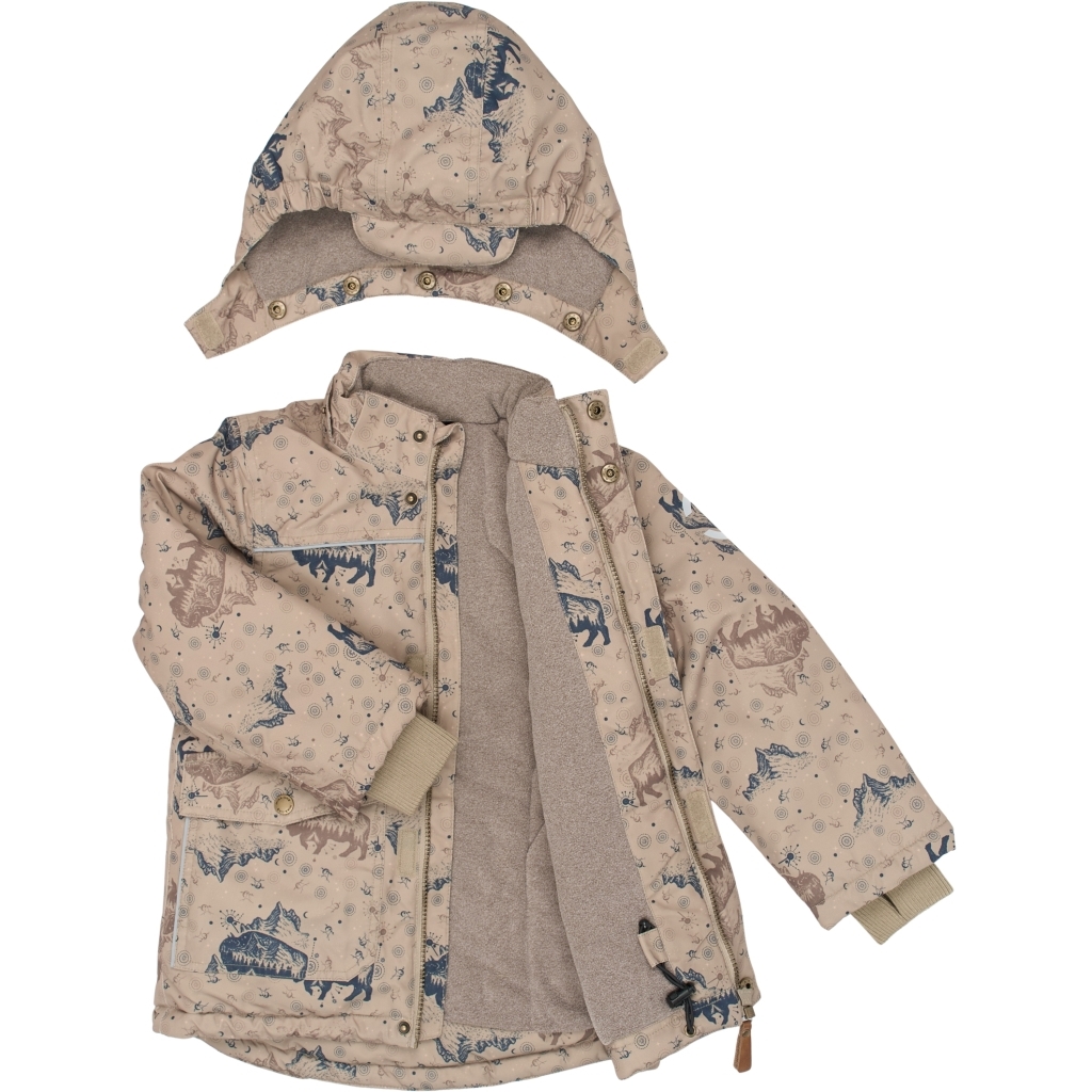 Fantastisk brun vinterjakke til drenge fra Mikk-Line. Jakke har 2 lommer foran, og er med elastiske manchetter med huller til tommelfingrene.