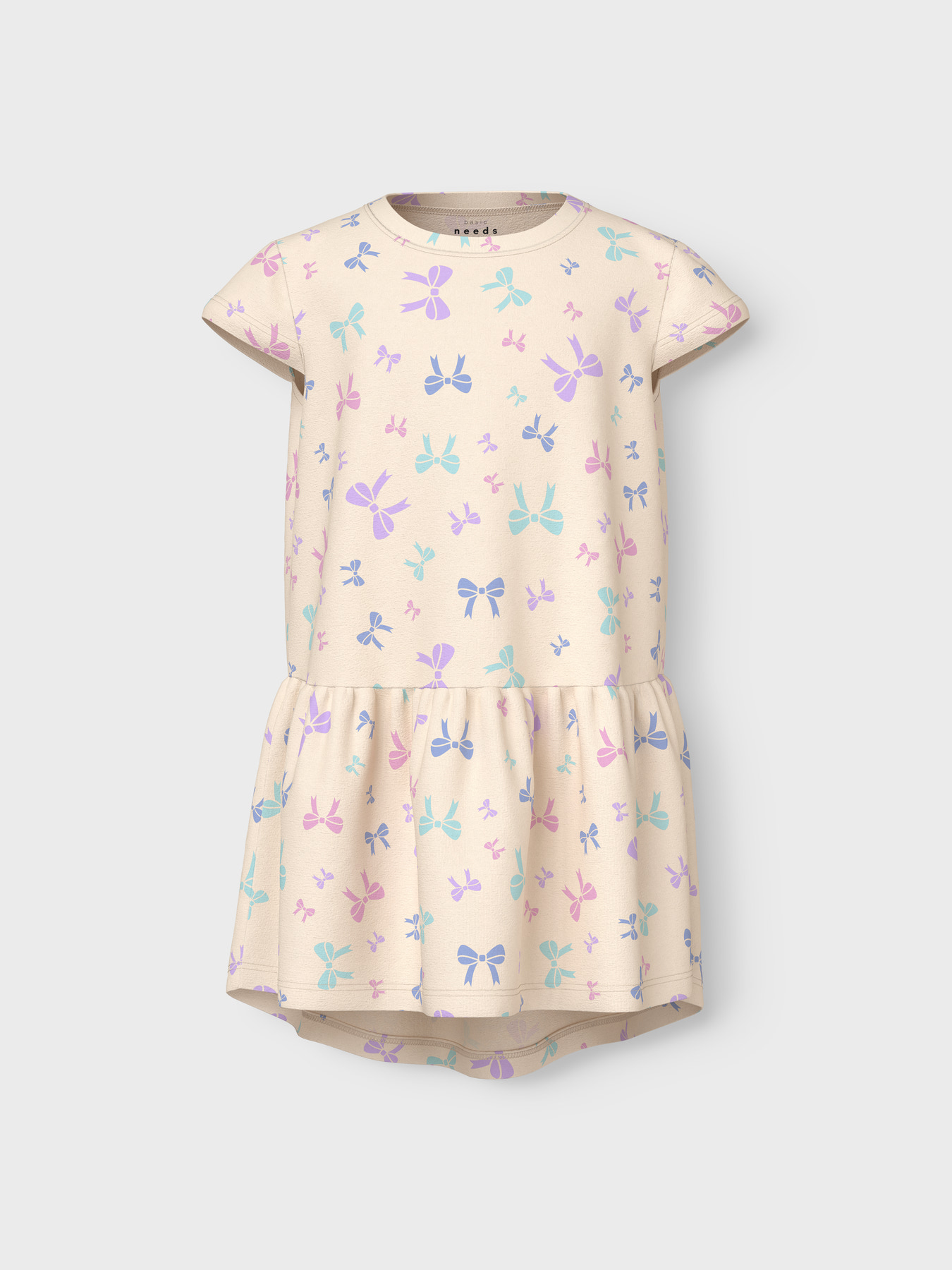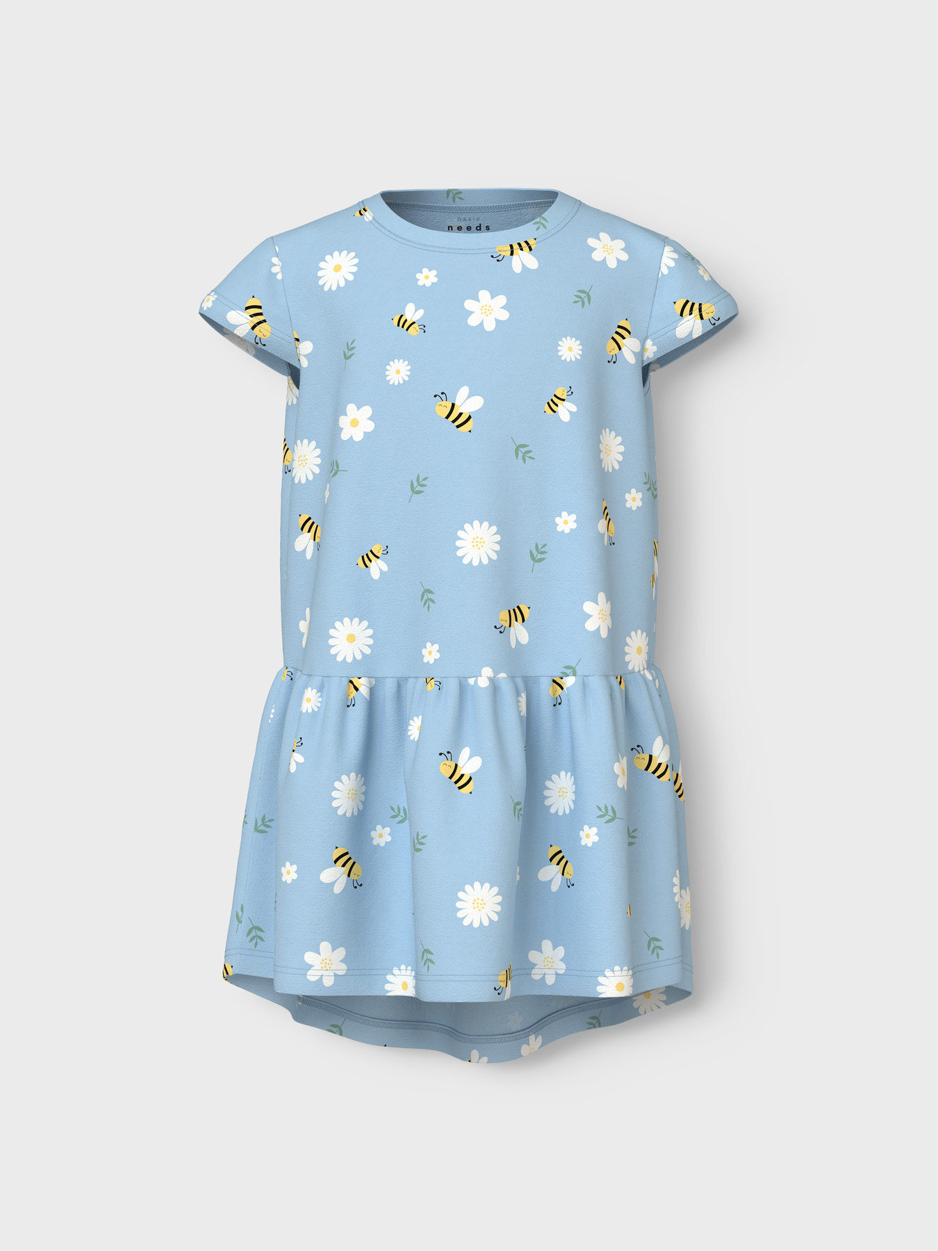 I denne pakke får du 2 flotte kortærmede kjoler fra Name It. Den rosa er med print af sløjfer, og den blå er med print af bier og blomster.