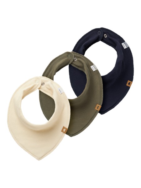 Mega fine rib hagesmækker fra Name it. De kommer i en 3-pak med 3 forskellige fine farver med trykknap lukning i 2 forskellige størrelser.