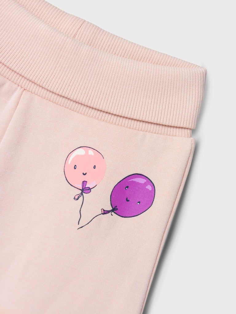 Mega søde små baby sweatpants med foldekant i livet. Bukserne er med elastikkant ved fødderne og lille ballon print på låret.