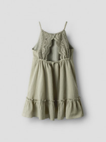 Let og lækker kjole fra Name it med tynde stropper og en virkelig yndig blonde ryg. Kjolen går cirka til knæet.