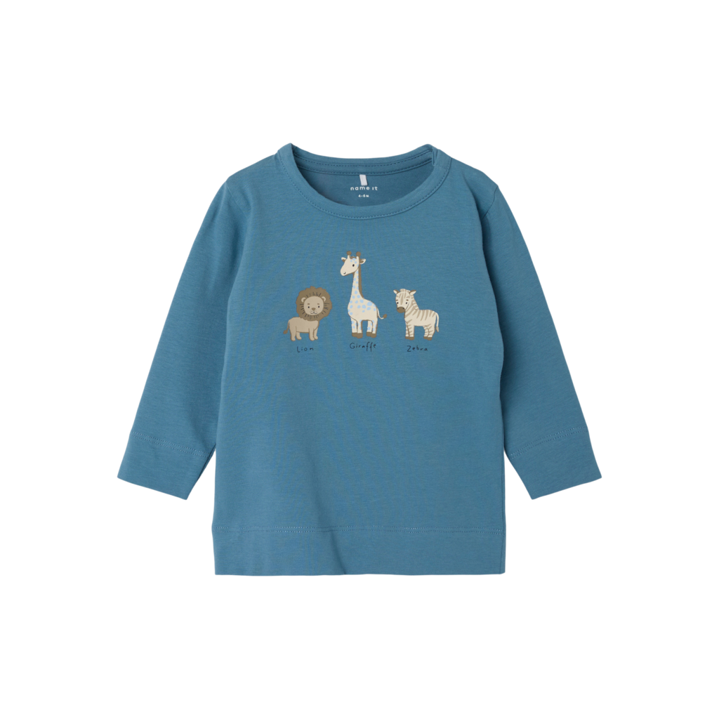 Mega sød langærmet bluse fra Name it med print af små dyr. Blusen er i blød kvalitet og med trykknapper i skulderen.