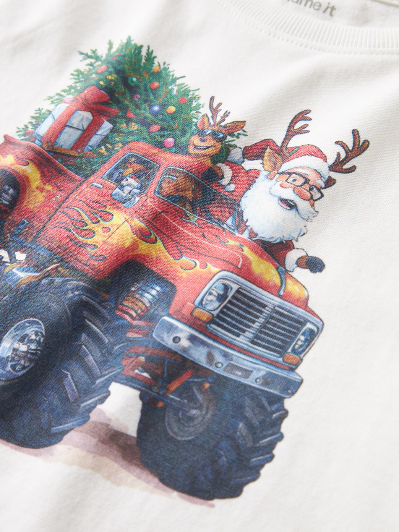Den sejeste julebluse fra name it. Blusen er blå med en jule monstertruk på.