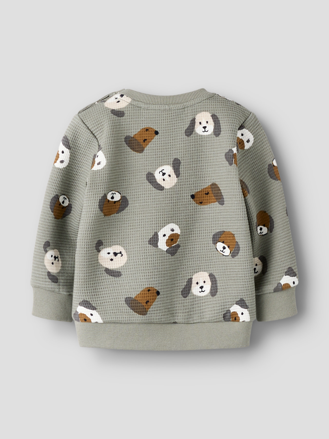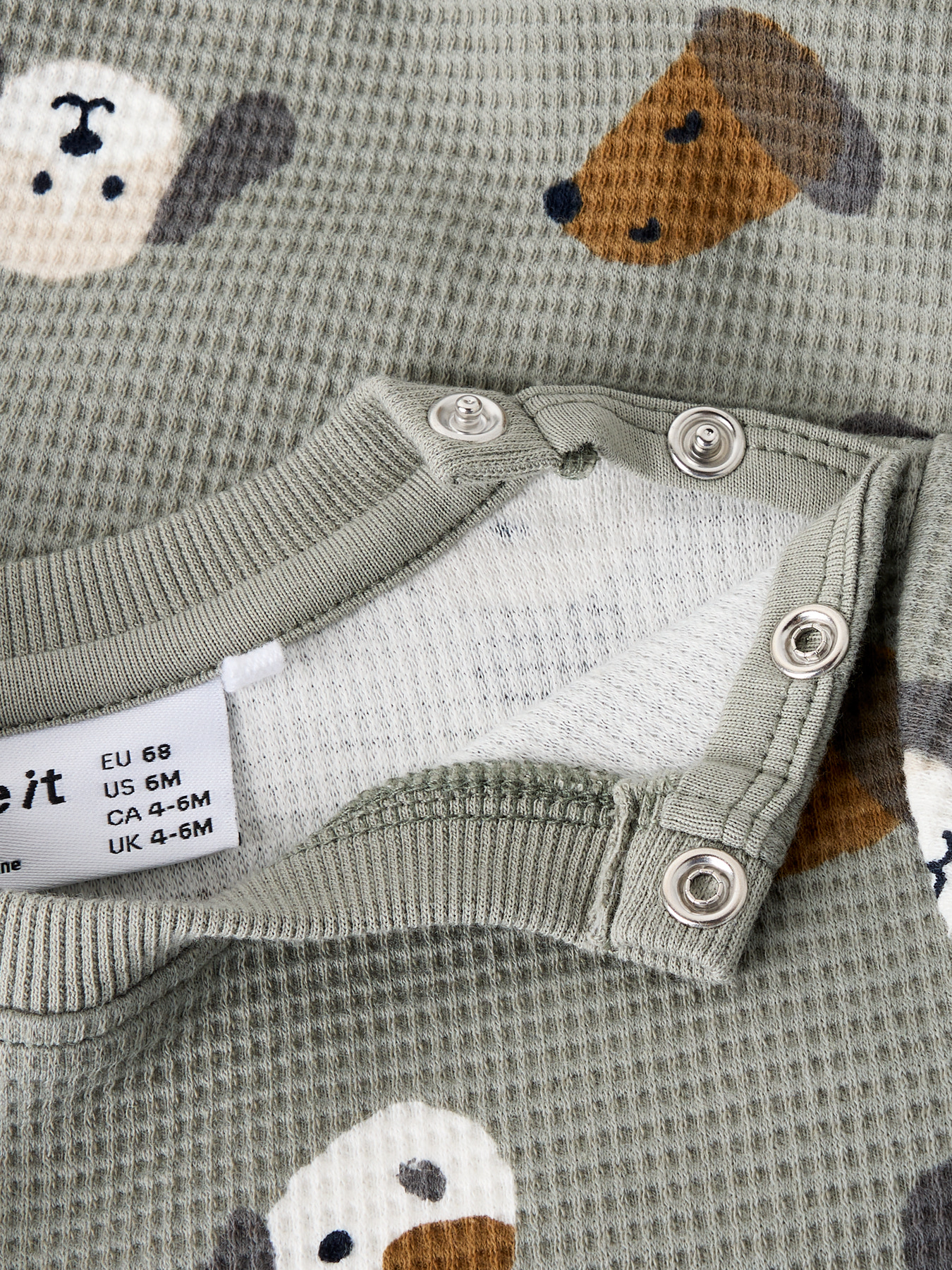 Den sødeste bluse fra name it. Den er i en skøn farve med hunde på. Den har trykknapper på skulderen.