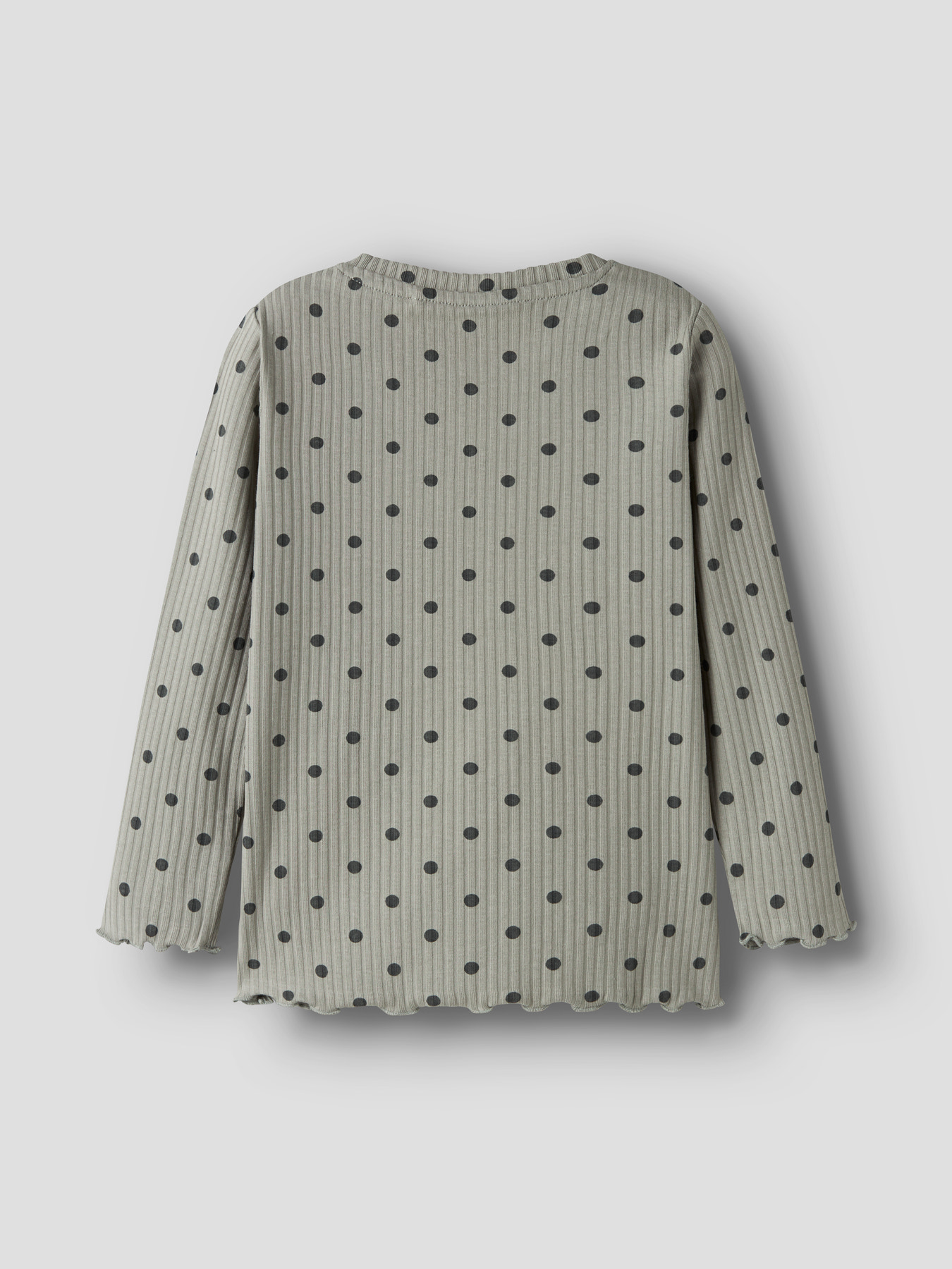 Super fed, stribet rib bluse fra Name It med rund hals og lange ærmer. Super blød kvalitet og bølgekanter ved hænderne.