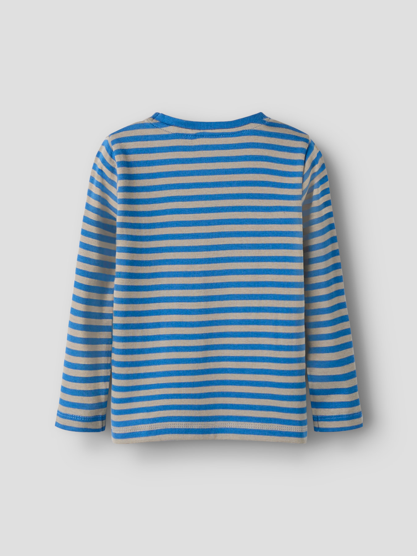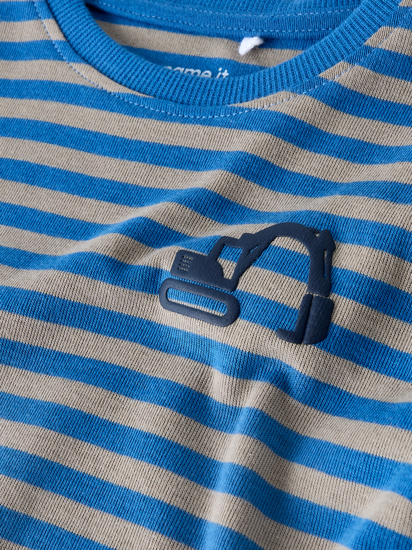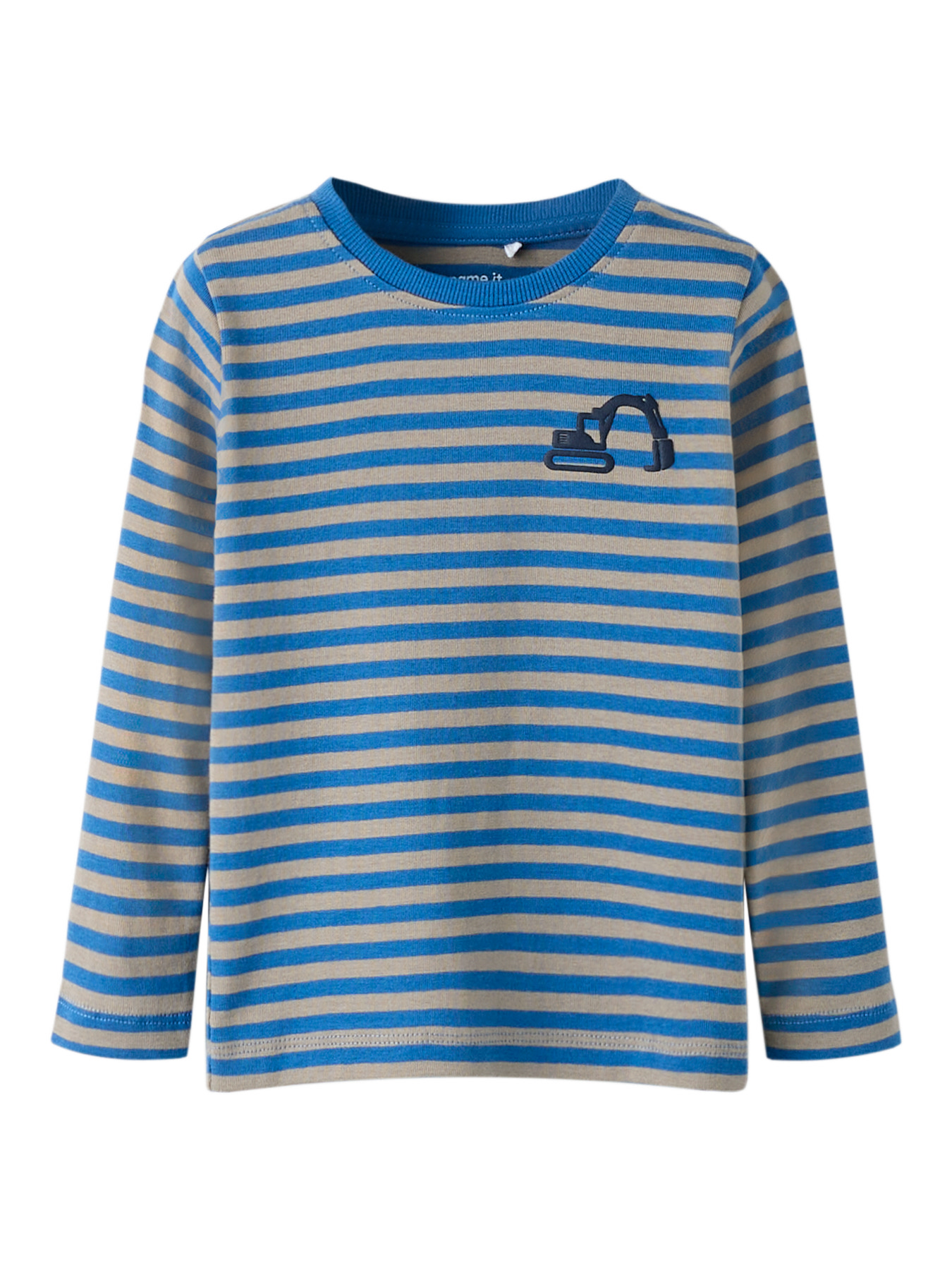 Mega sød bluse fra name it, blusen er med de fineste striber og en lille maskine på brystet. Den har rund hals.