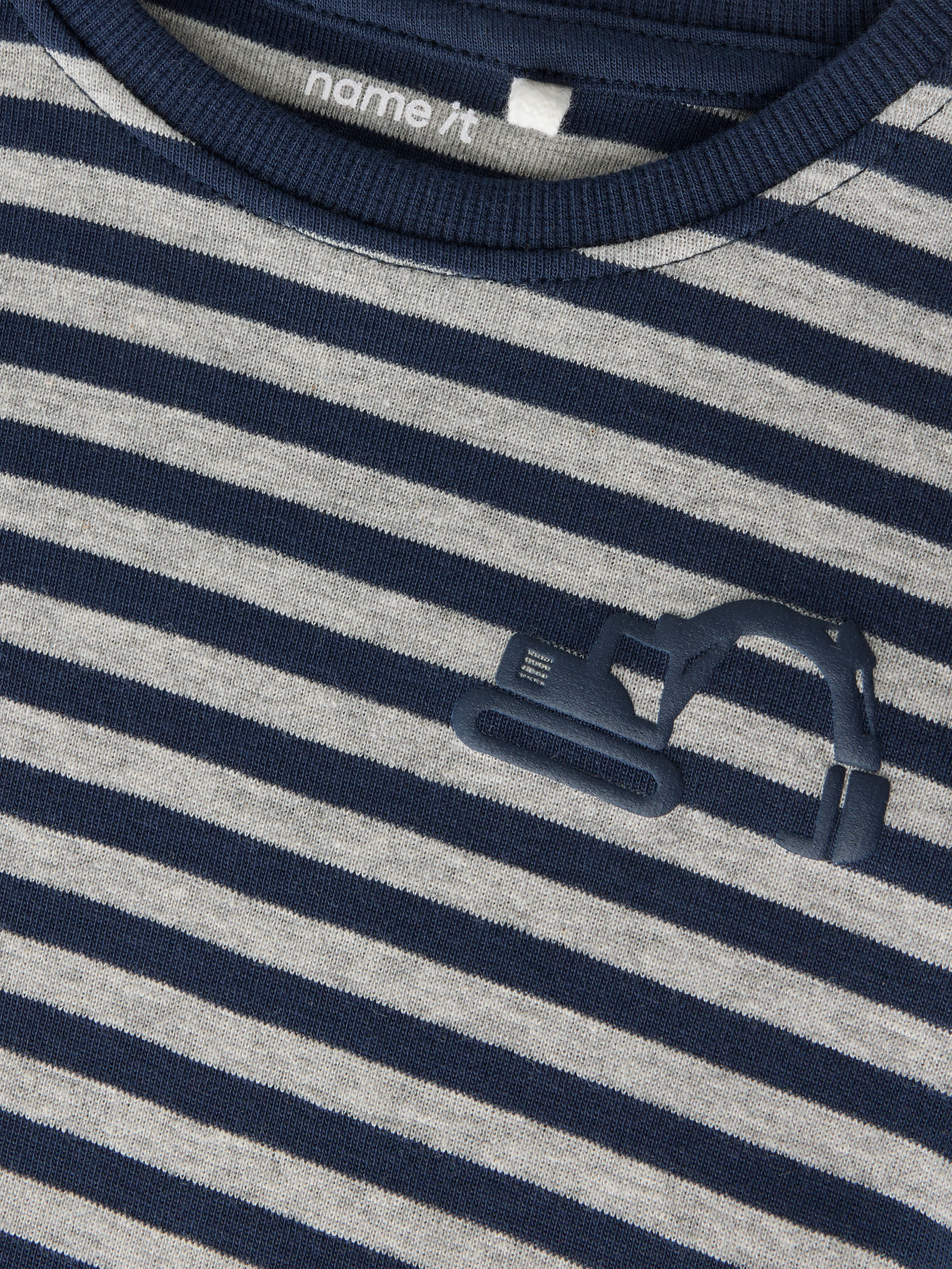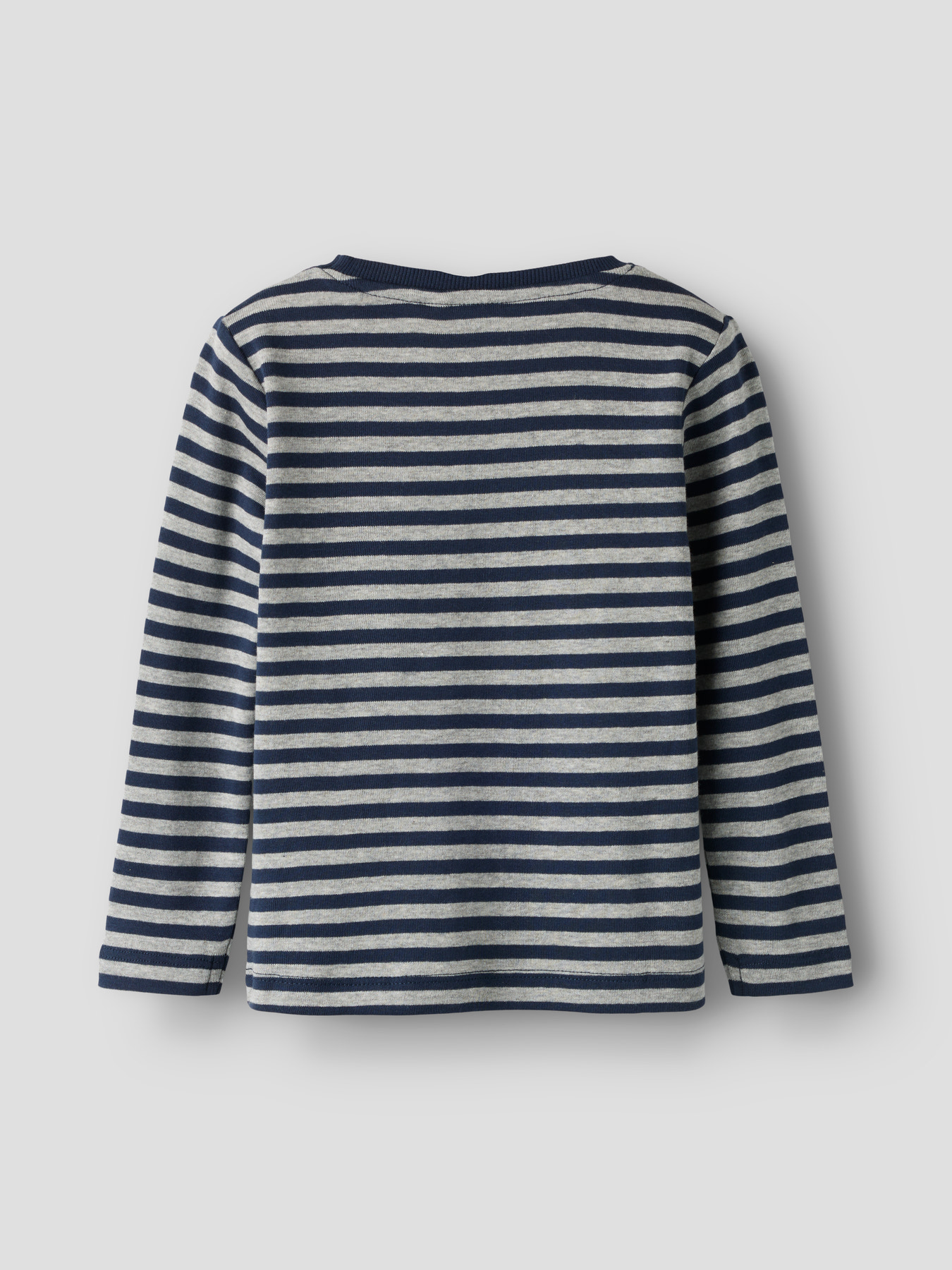 Mega sød bluse fra name it, blusen er med de fineste striber og en lille maskine på brystet. Den har rund hals.