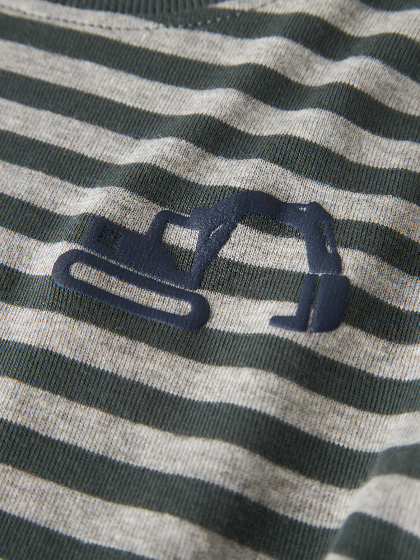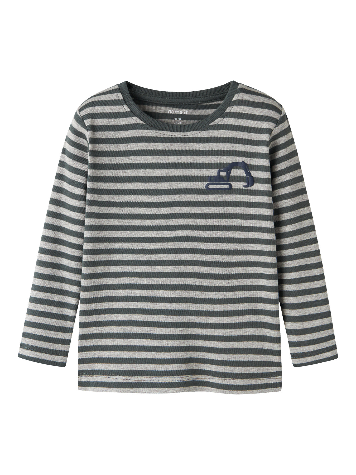 Mega sød bluse fra name it, blusen er med de fineste striber og en lille maskine på brystet. Den har rund hals.