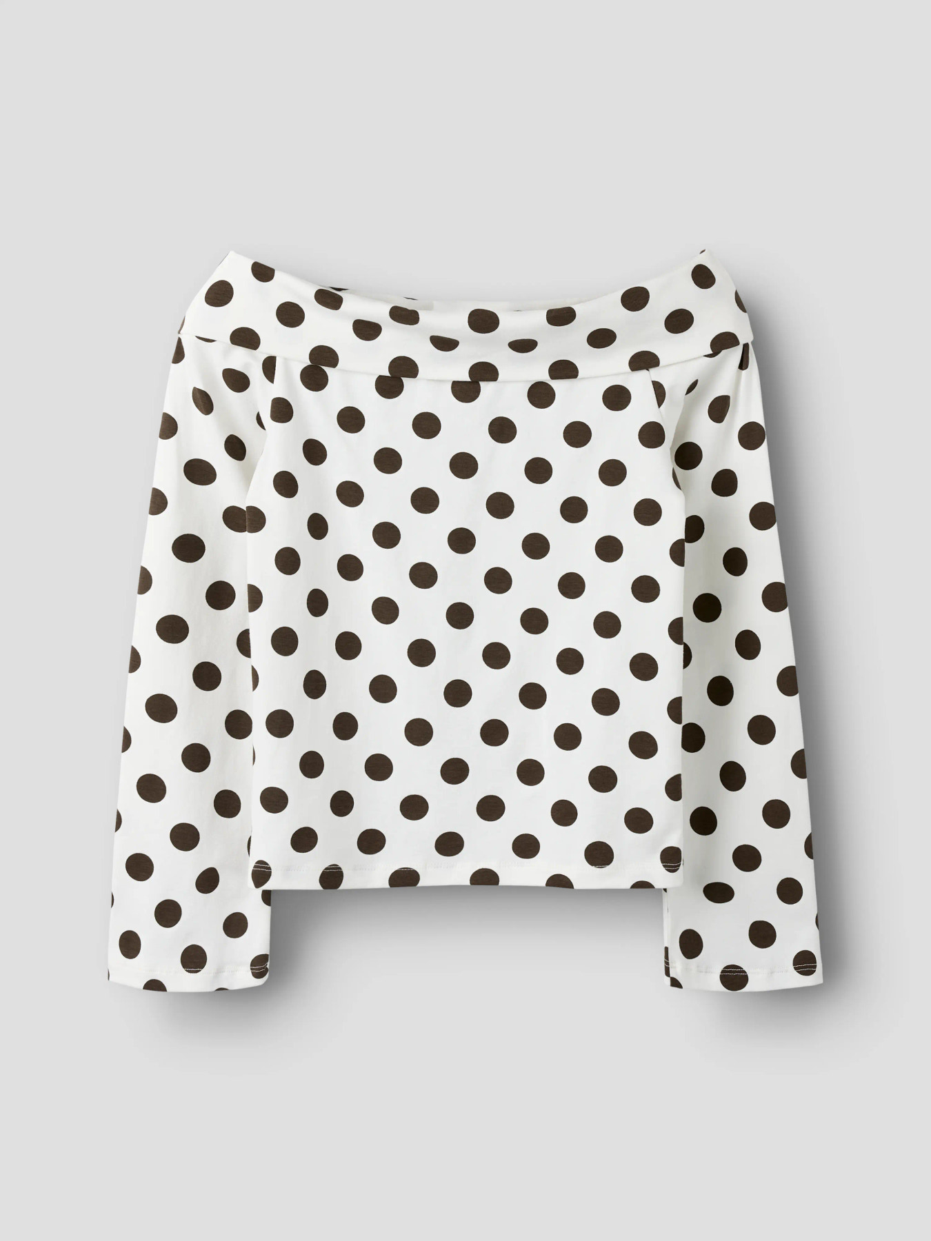 Den sødeste off shoulder bluse fra name it. Den er med store prikker på.