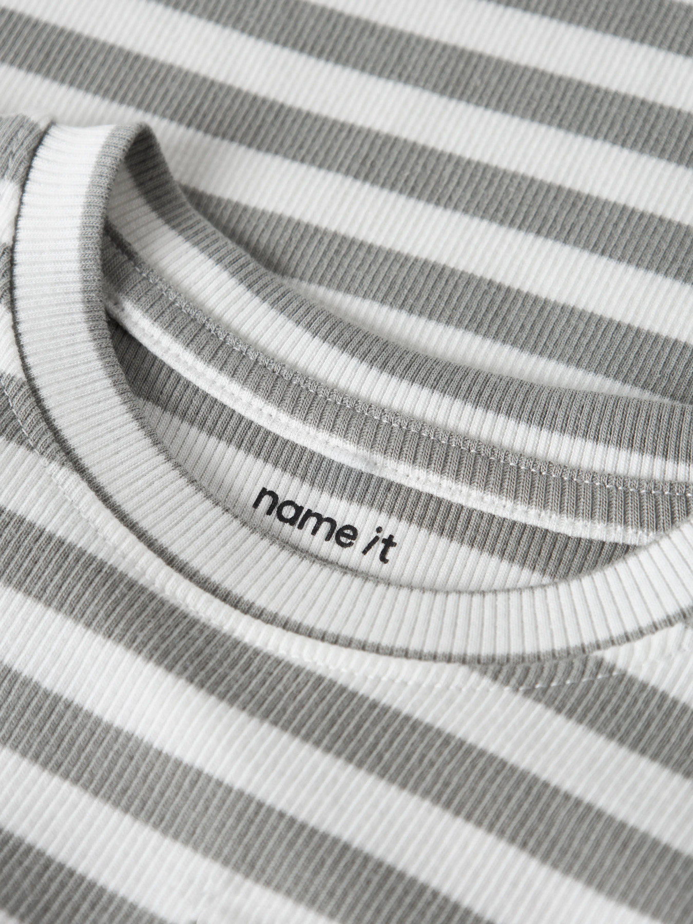 Flotte striber på denne langærmede bluse fra Name it. Blusen er med brystlomme, rund halsåbning og er i det blødeste, lækre materiale.