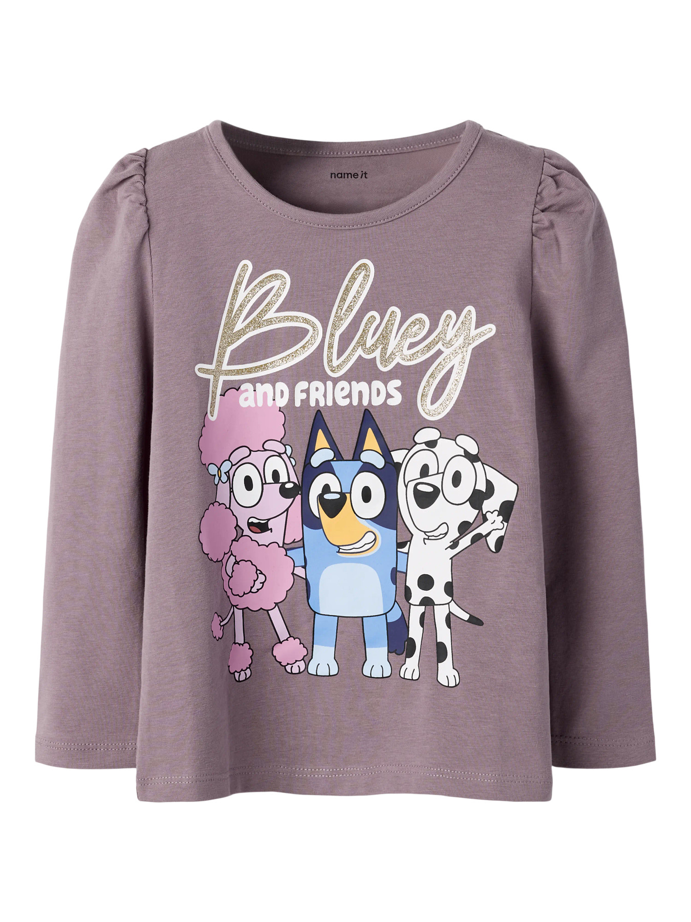 Sød bluse i blød og strækbar jerseykvalitet, der sikrer komfort og bevægelsesfrihed. Den har rund hals, lange puff-ærmer, glitterdetaljer og blødt rubber print, som giver et sjovt og stilfuldt look i en komfortabel regular fit.