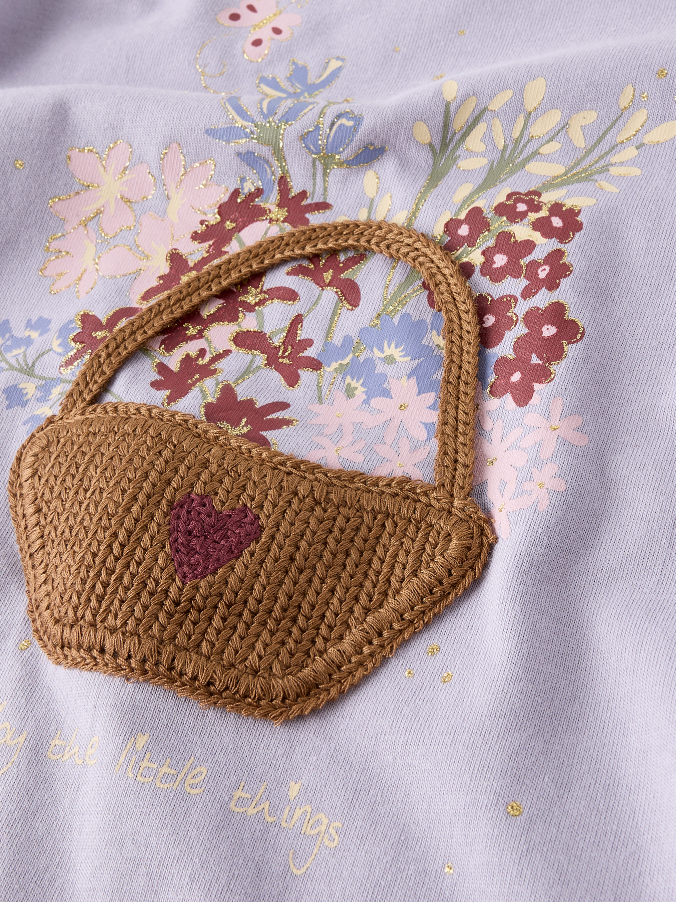 Blusen er lavet i blød og strækbar jersey, som føles let mod huden og giver god bevægelsesfrihed. Den har rund hals, lange ærmer og et flot frontprint med glimmer, der tilfører et cool og funklende look.