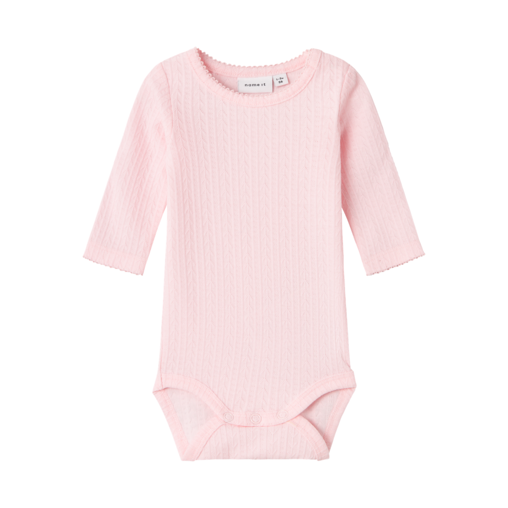 Mega smuk langærmet body fra Name it. Bodyen er i fint ribbet mønster og lukkes med trykknapper.