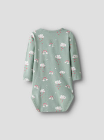 Mega sød langærmet body fra Name it med skønt print af små regnbuer i fine farver. Bodyen lukkes med trykknapper.
